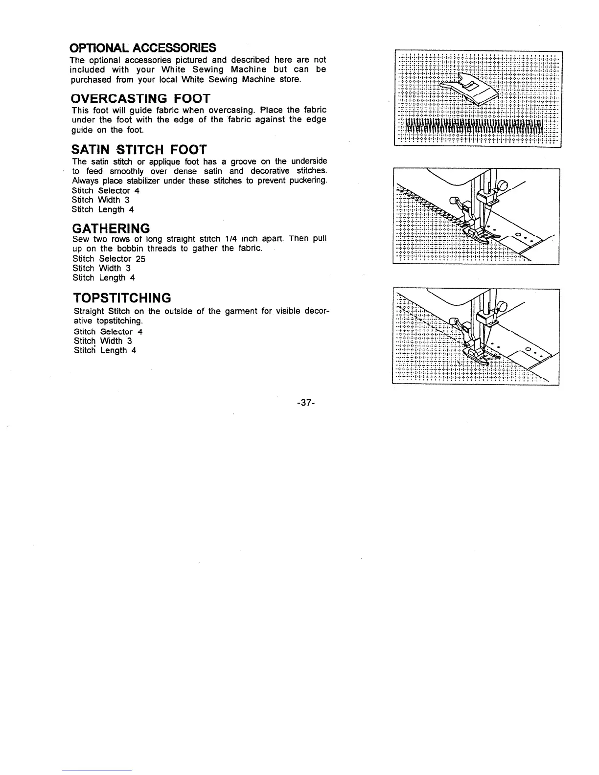 White 2037 - Optional Accessories and Advanced Stitches; Optional Feet and Gathering