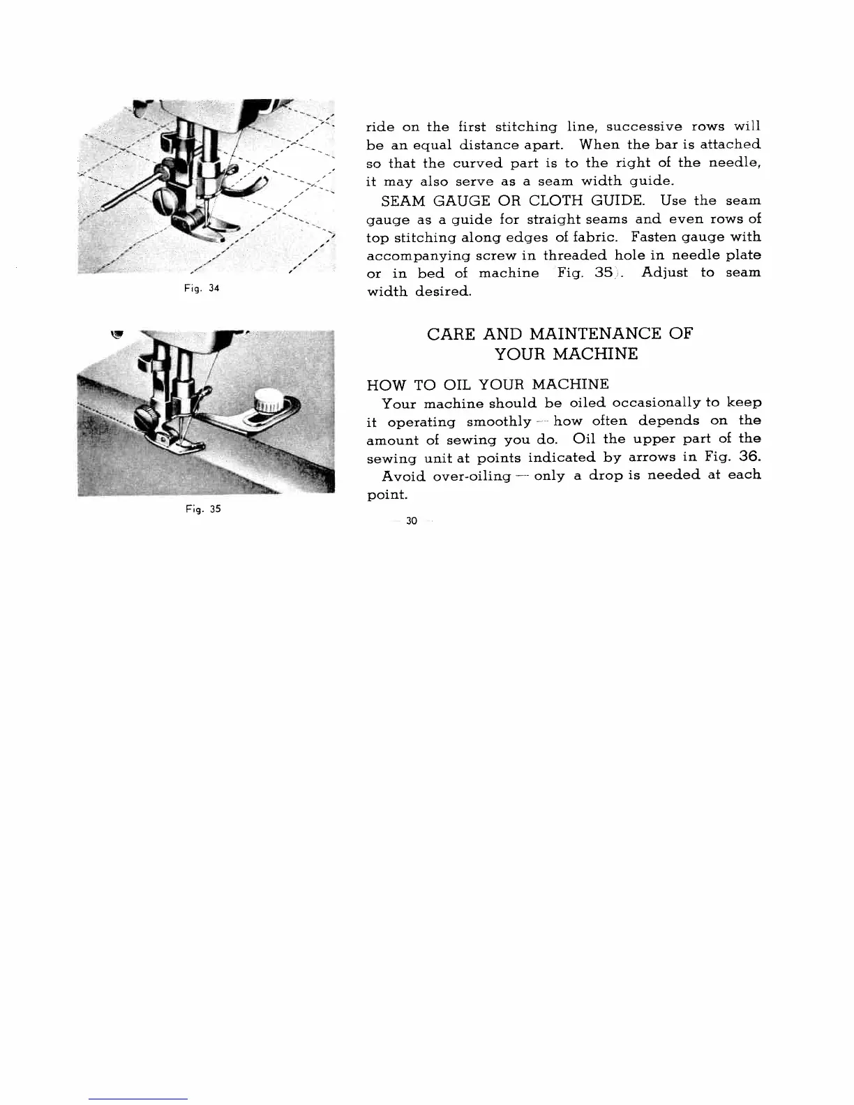 White 2137 - Seam Gauge or Cloth Guide; Seam Gauge Attachment Usage; Care and Maintenance of Your Machine; Machine Oiling Procedure