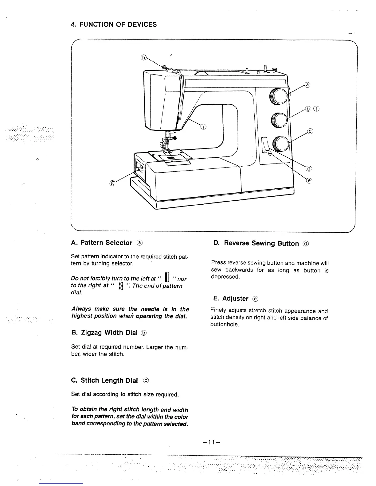 White 2221 - Function of Devices; Pattern Selection and Stitch Control