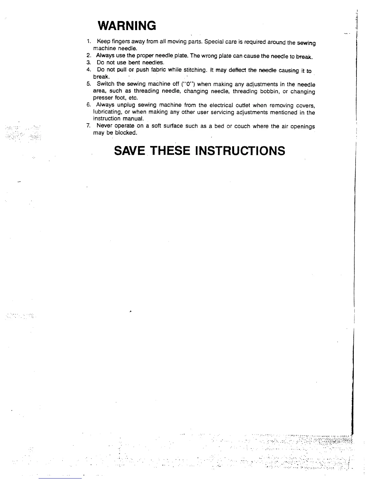 White 2221 - Operating Warnings; Safe Operation Guidelines