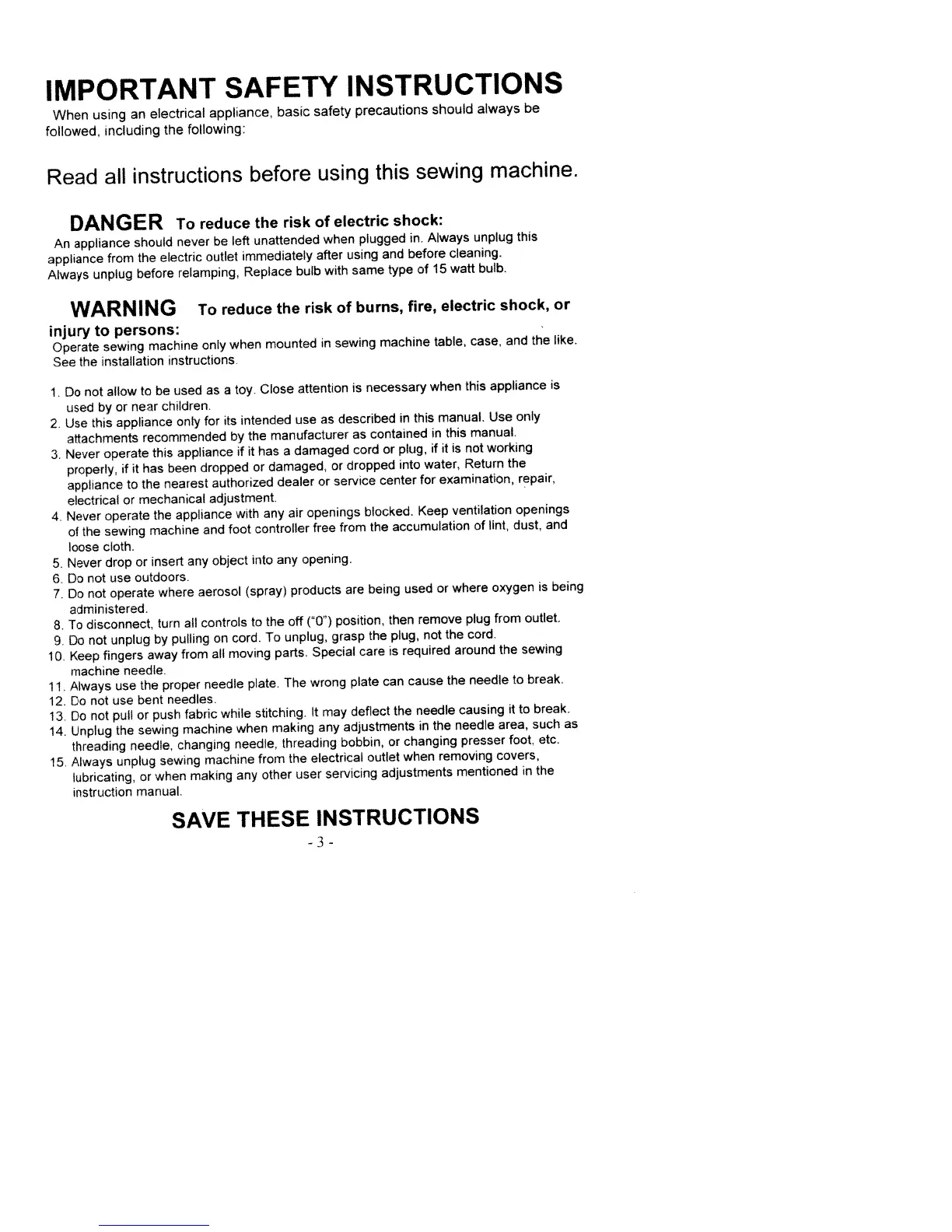 White 2335 - IMPORTANT SAFETY INSTRUCTIONS