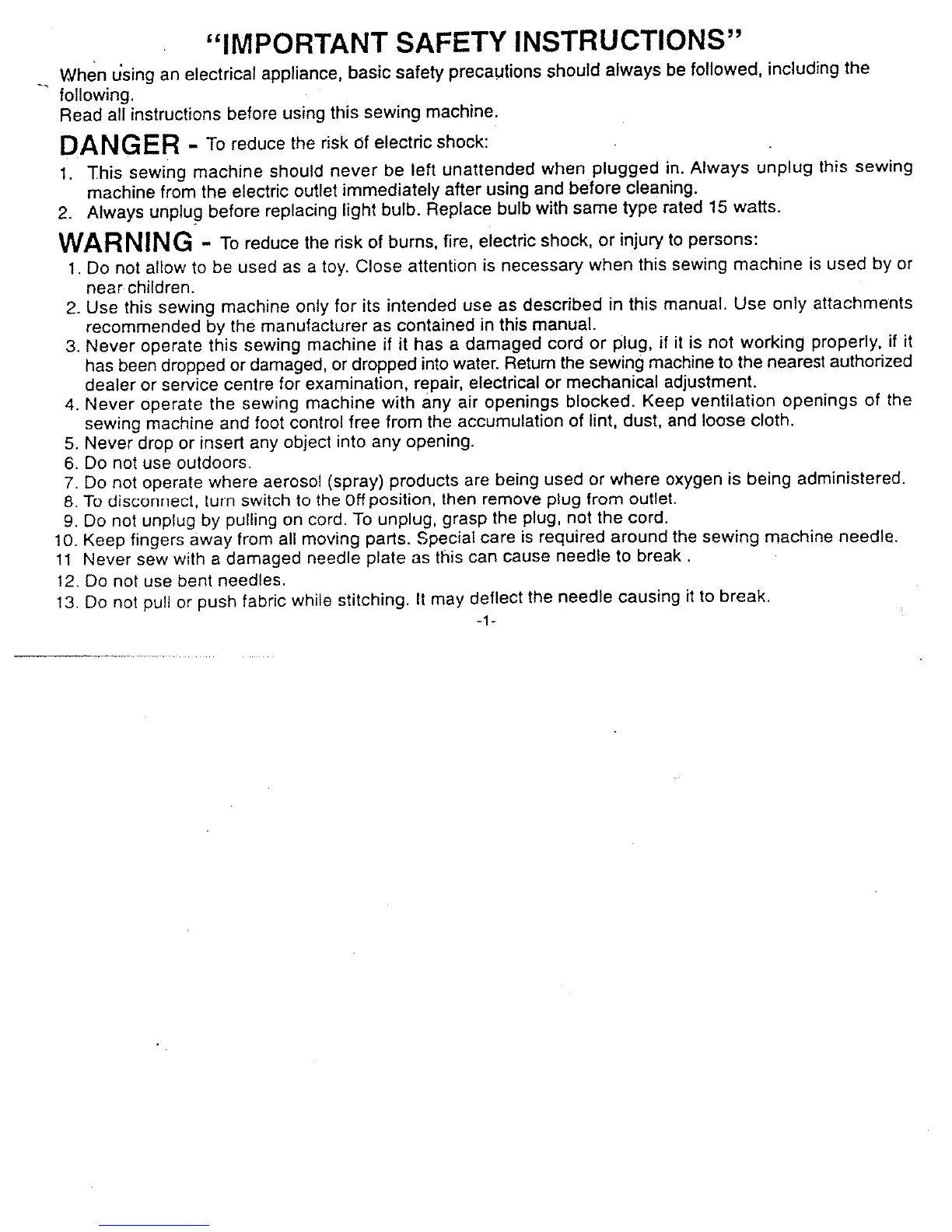 White 2999 - Important Safety Instructions; Electrical Shock Hazards; General Usage Precautions