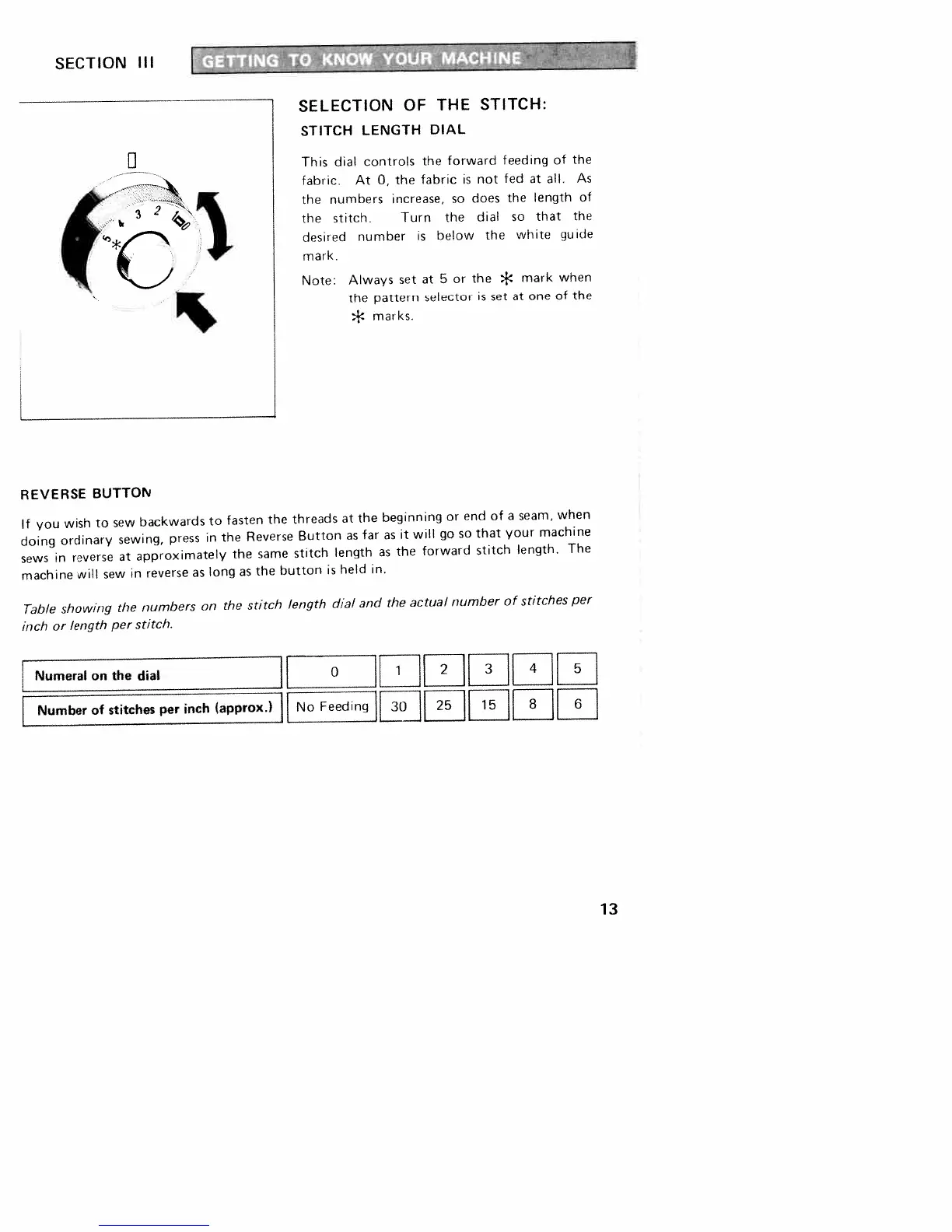 White 310 - Getting to Know Your Machine; Stitch Length Dial; Reverse Button