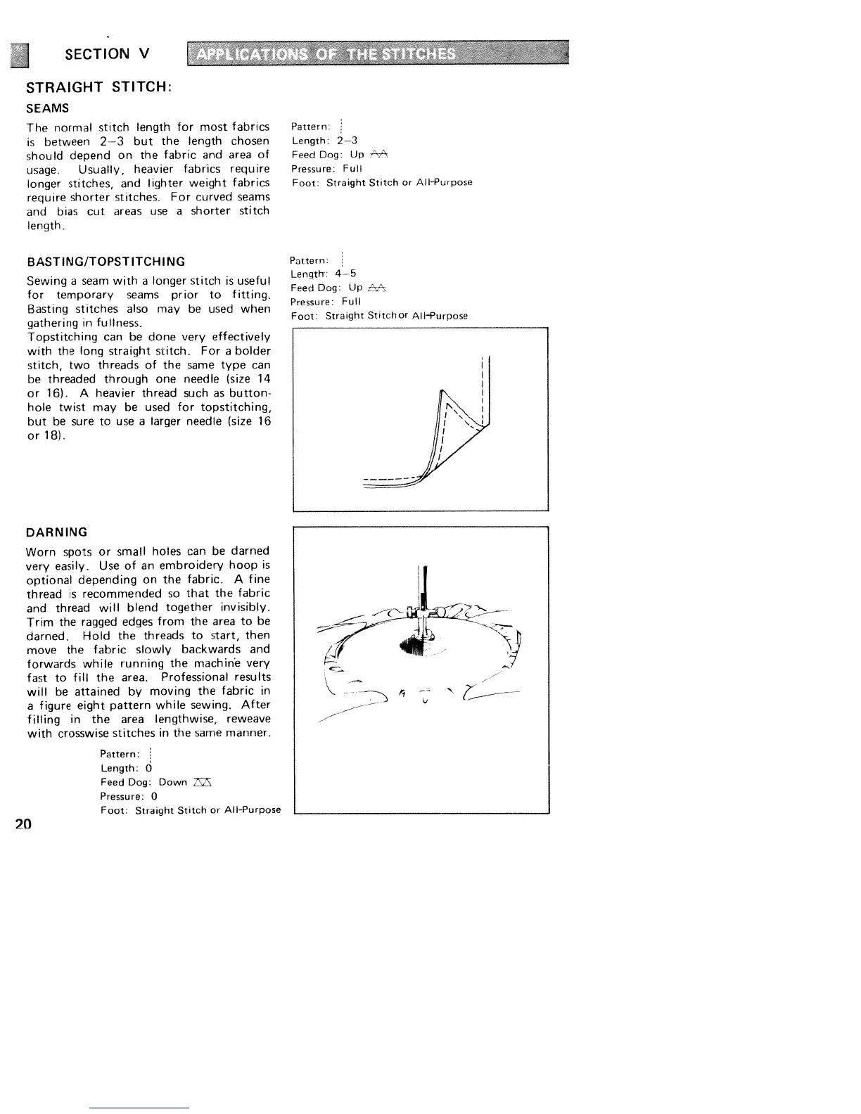 White 310 - Applications of the Stitches; Straight Stitch: Seams; Basting;Topstitching; Darning