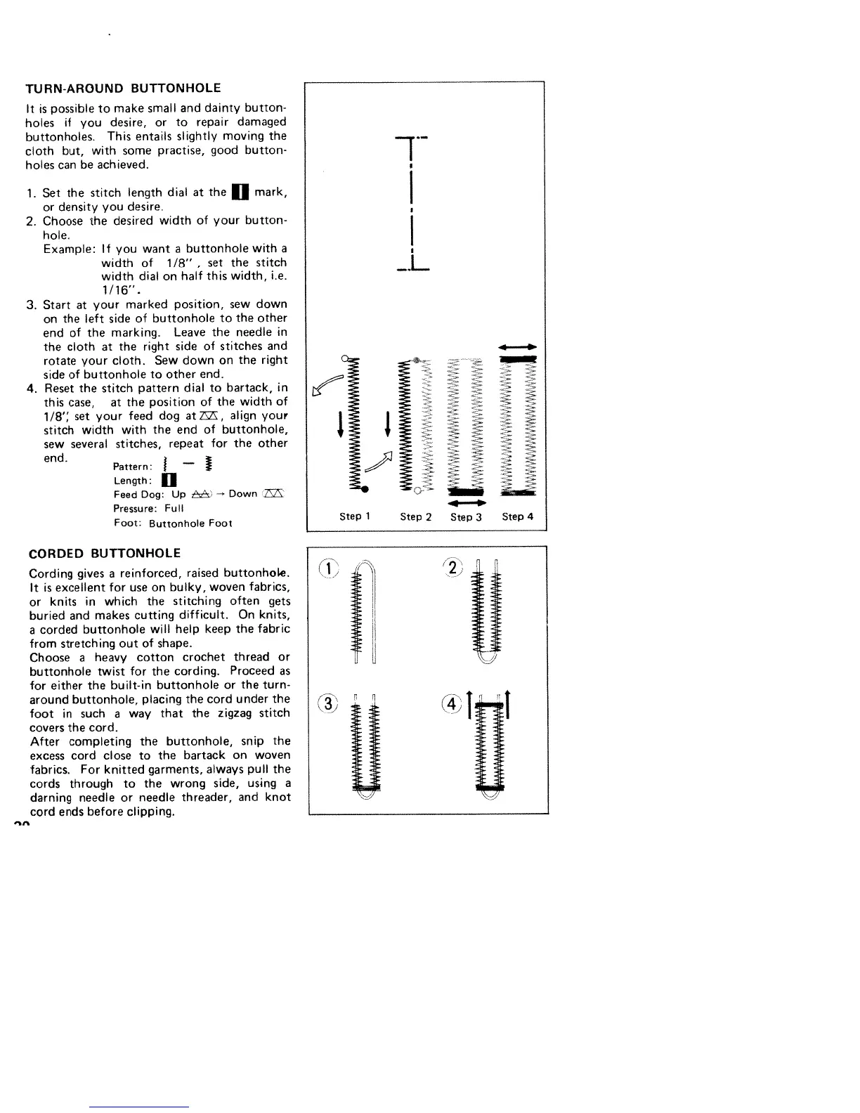 White 310 - Turn-Around Buttonhole; Corded Buttonhole
