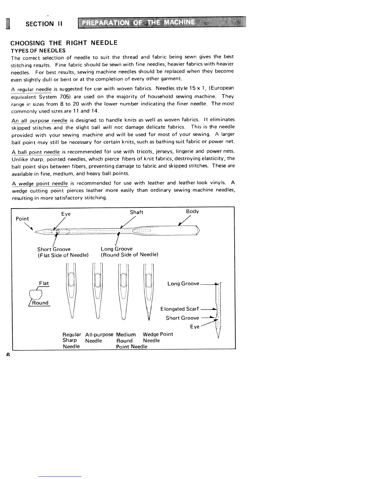 White 310 - Preparation of the Machine; Choosing the Right Needle