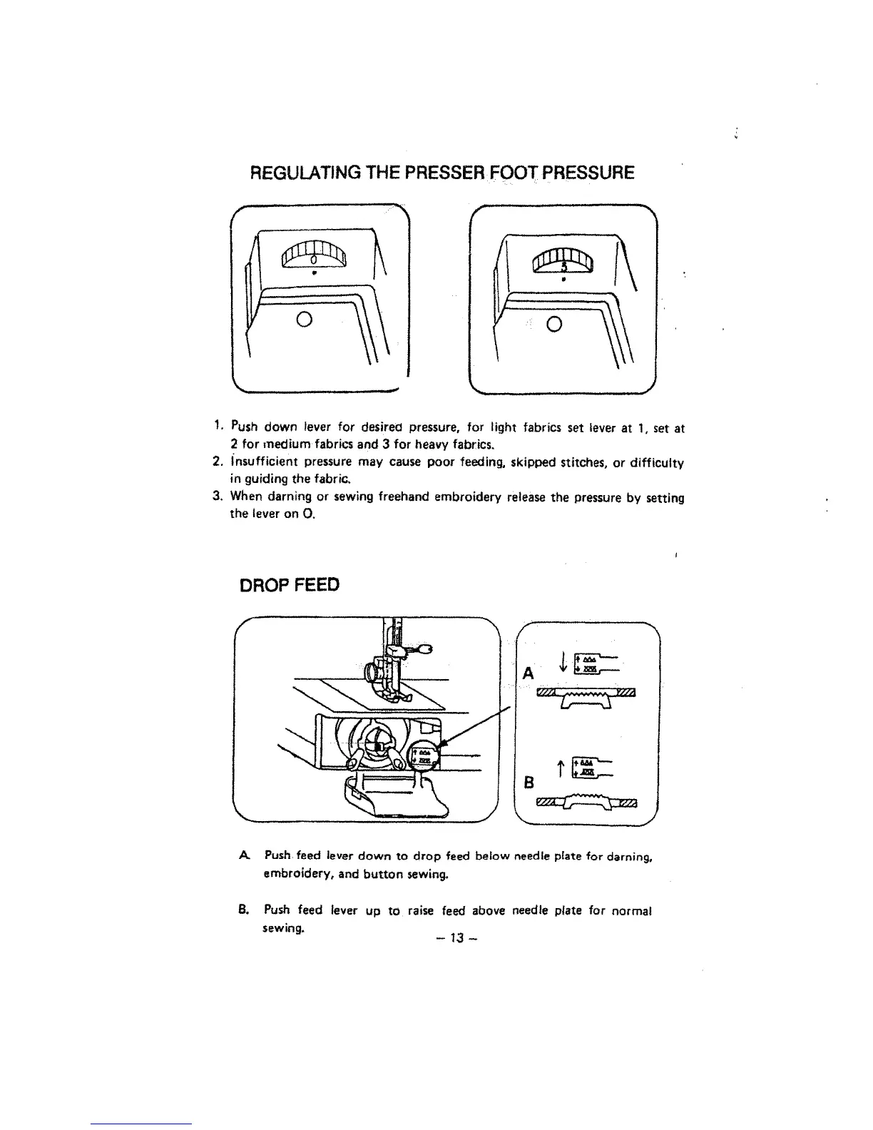 White 312 - REGULATING PRESSER FOOT PRESSURE; DROP FEED MECHANISM OPERATION