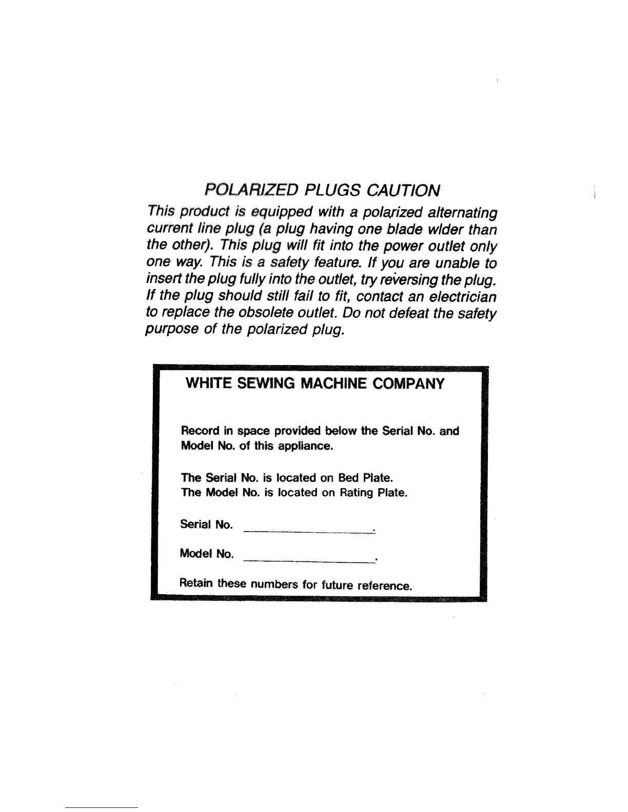 White 312 - POLARIZED PLUGS CAUTION; Record Appliance Identification