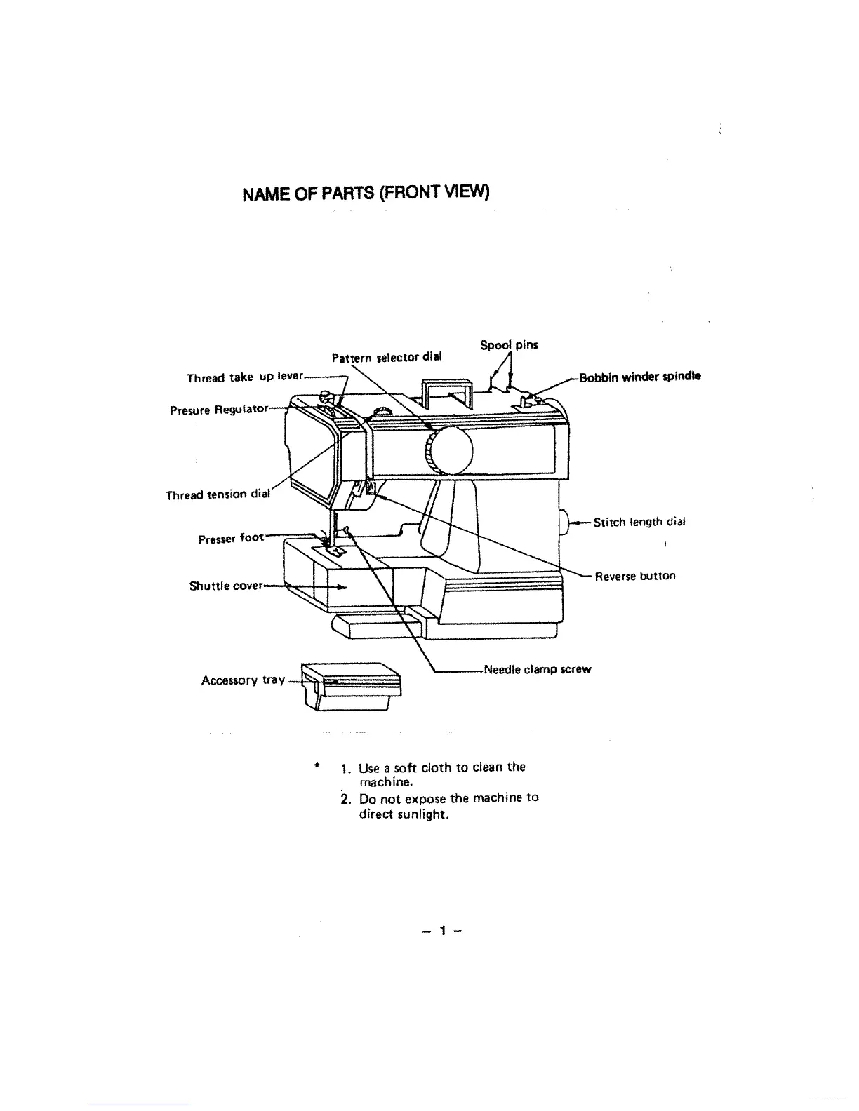 White 312 - NAME OF PARTS (FRONT VIEW); Machine Care and Maintenance Tips