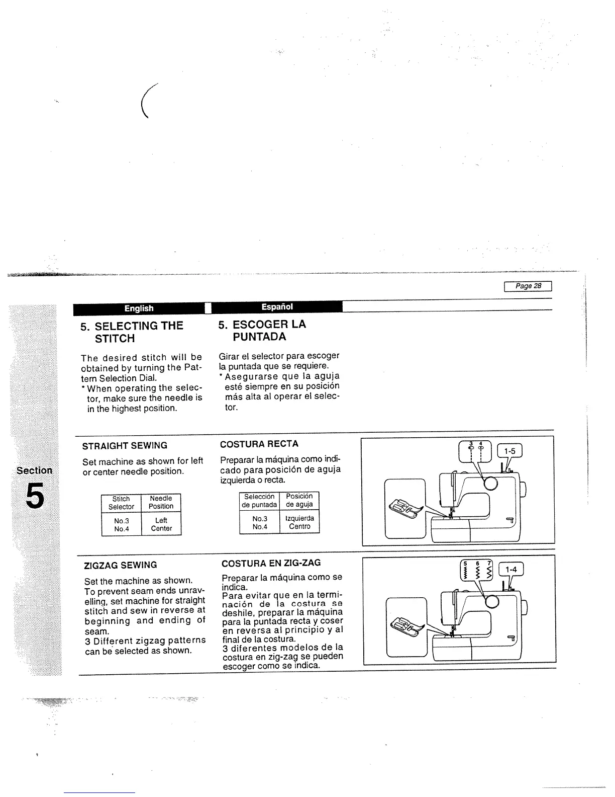 White 4050 - 5 Selecting the Stitch; Straight Sewing; Zigzag Sewing