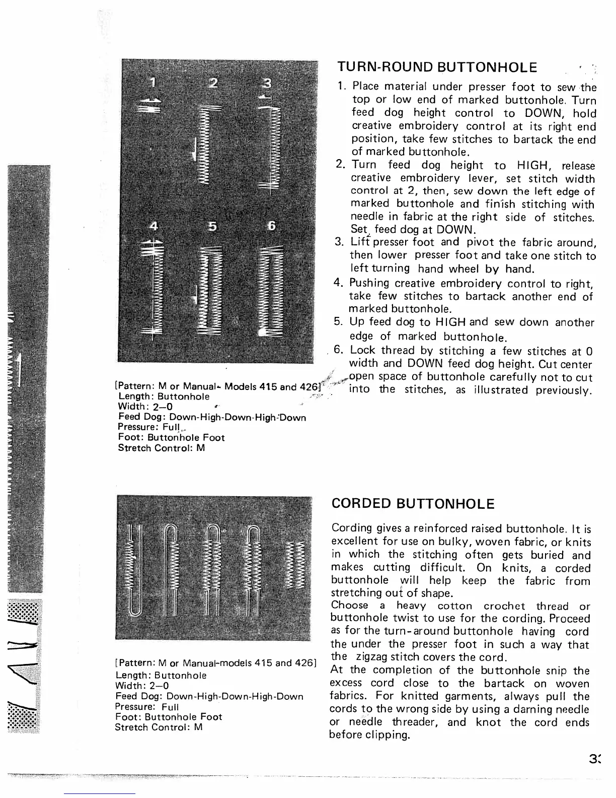 White 415 - Turn-Round Buttonhole; Corded Buttonhole