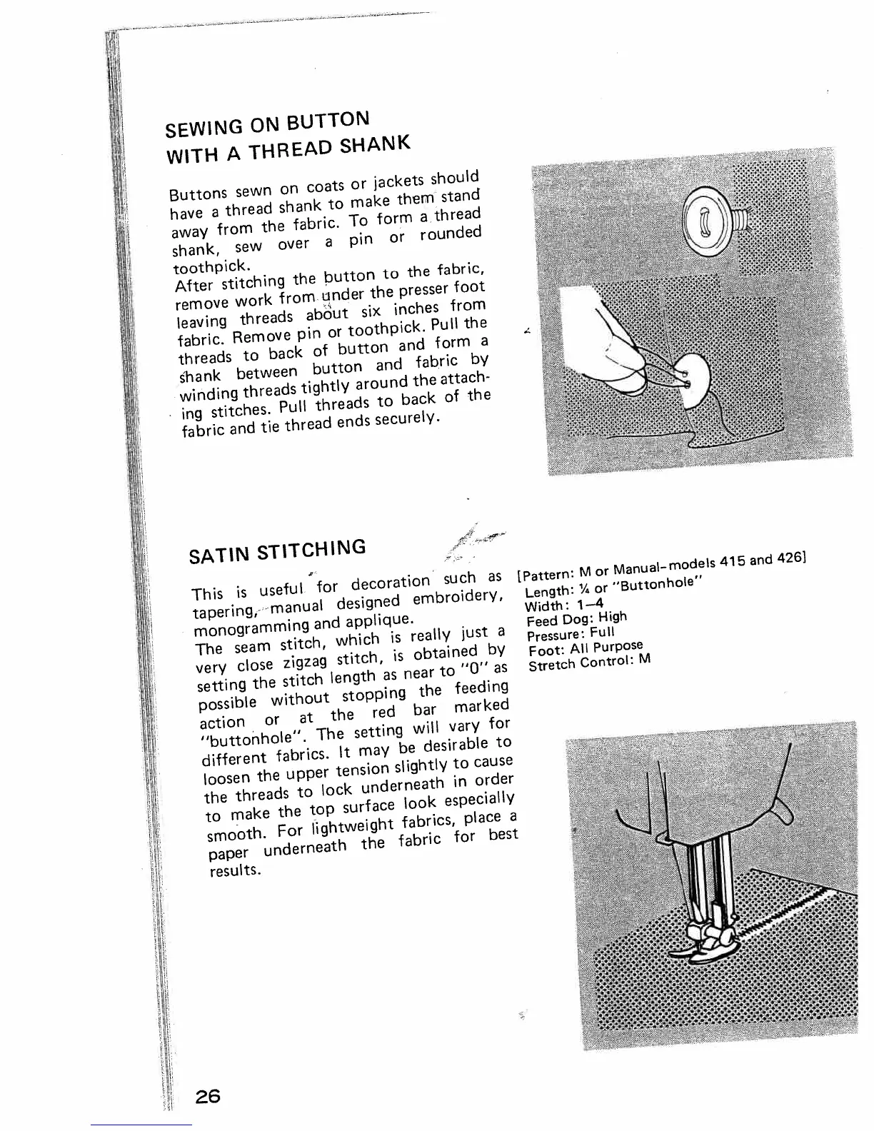 White 426 - Sewing on Button With a Thread Shank; Satin Stitching