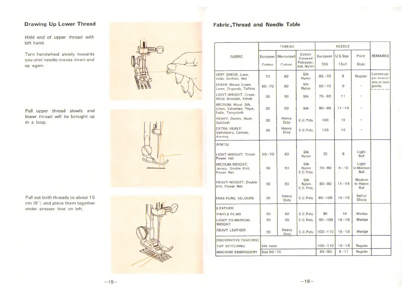 White 445 - Drawing up Lower Thread; Fabric, Thread and Needle Table