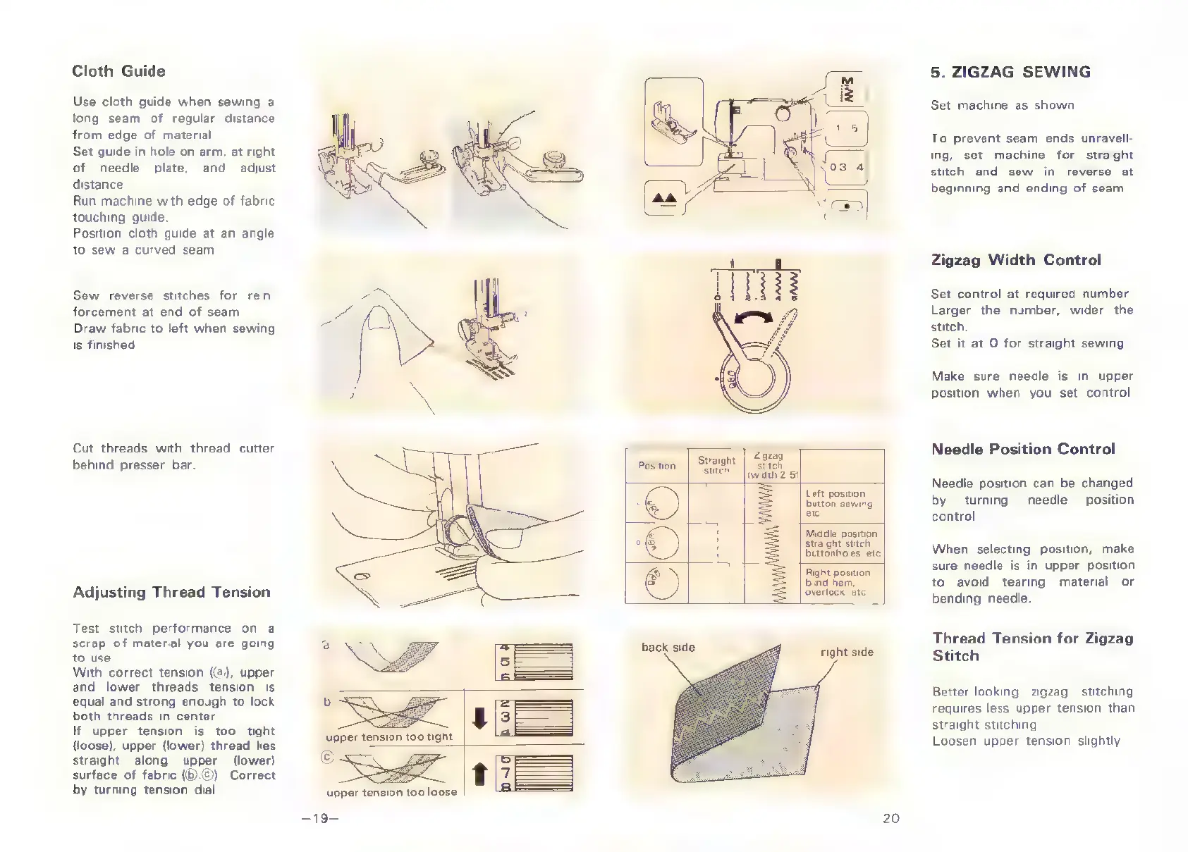 White 445 - Cloth Guide; Zigzag Sewing; Adjusting Thread Tension; Needle Position Control