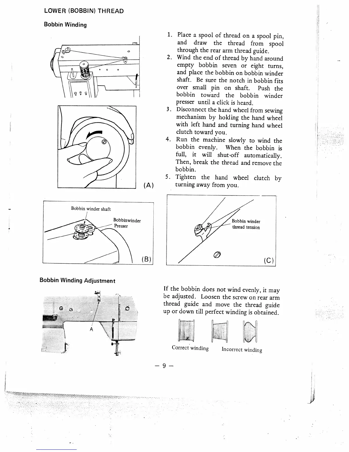 White 447 - Bobbin Winding; Bobbin Winding Adjustment