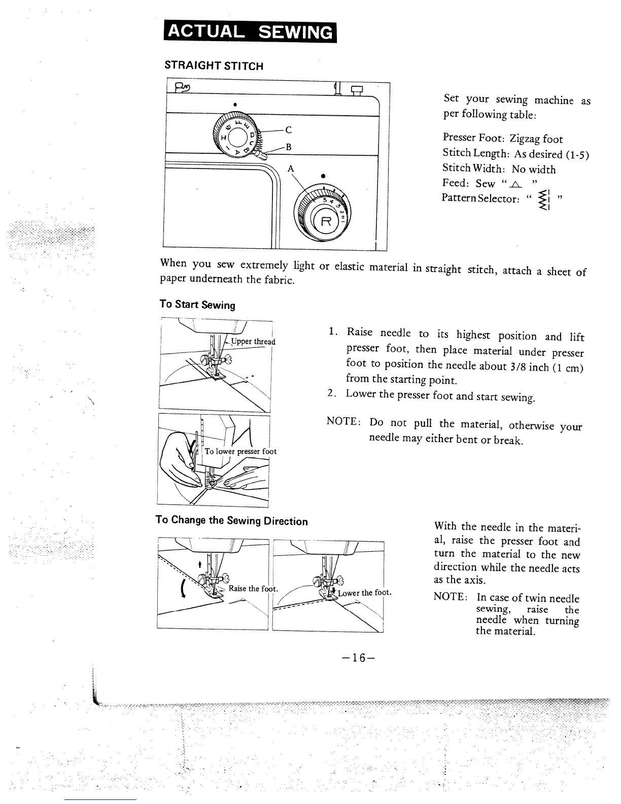 White 447 - Actual Sewing Techniques; Straight Stitch; Starting to Sew; Changing Sewing Direction