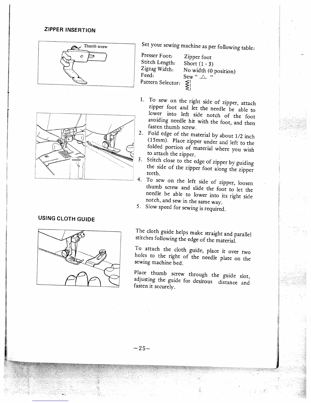 White 447 - Zipper Insertion; Using the Cloth Guide