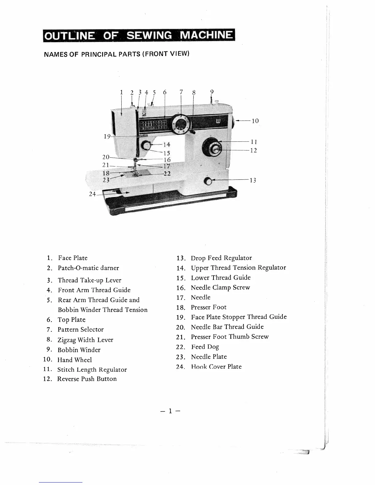 White 447 - Sewing Machine Components; Names of Principal Parts (Front View)