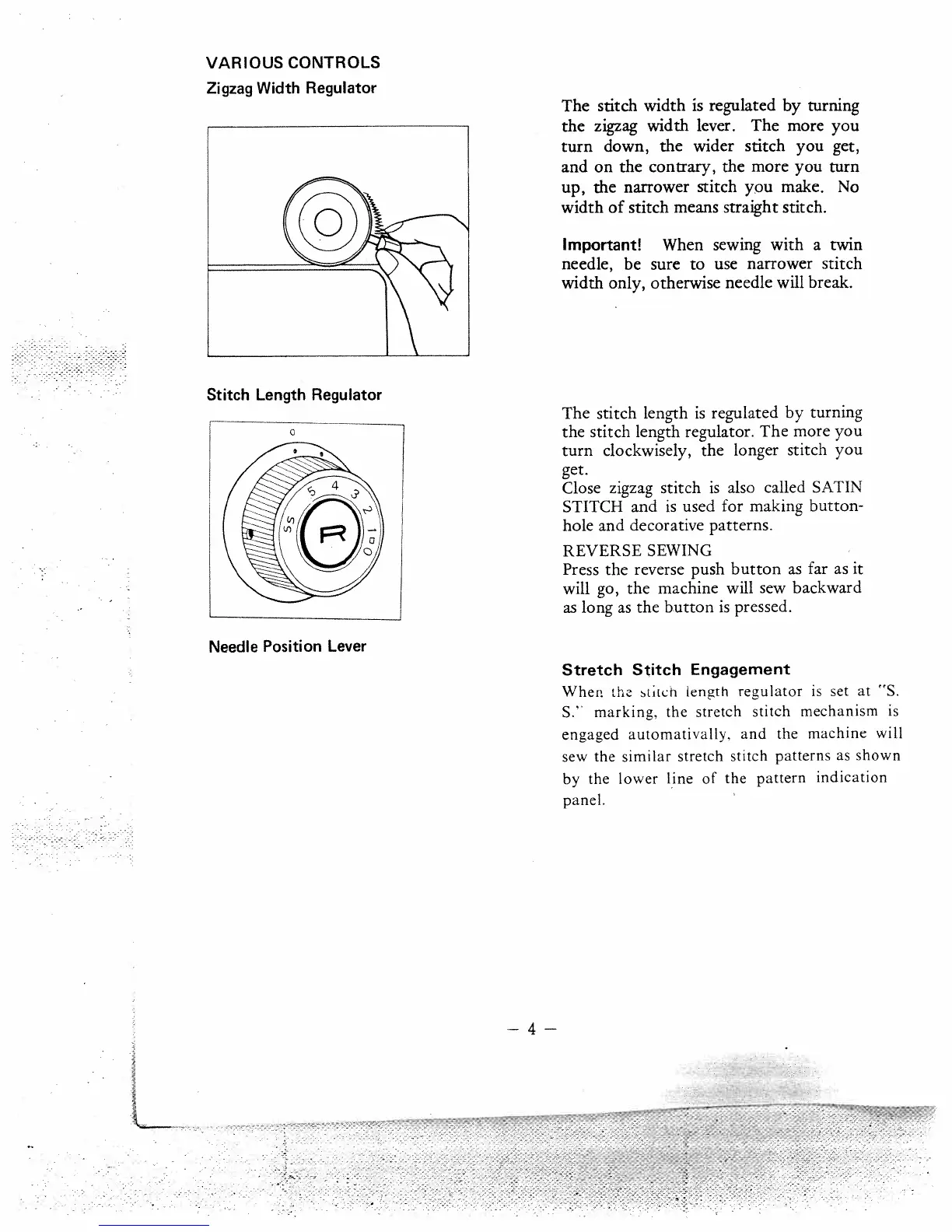 White 447 - Zigzag Width Regulator; Stitch Length Regulator; Needle Position Lever; Reverse Sewing
