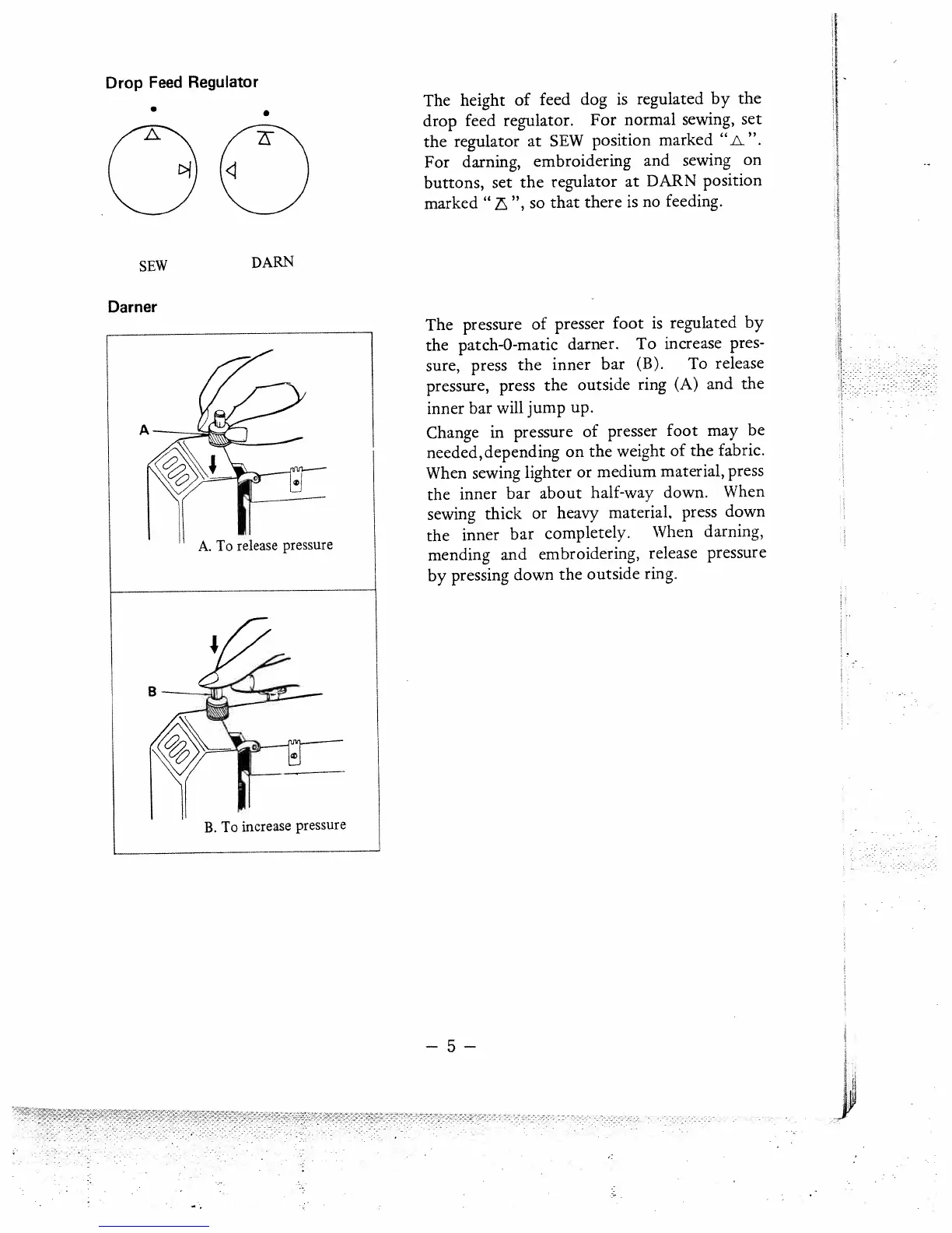 White 447 - Drop Feed Regulator; Presser Foot Pressure Adjustment