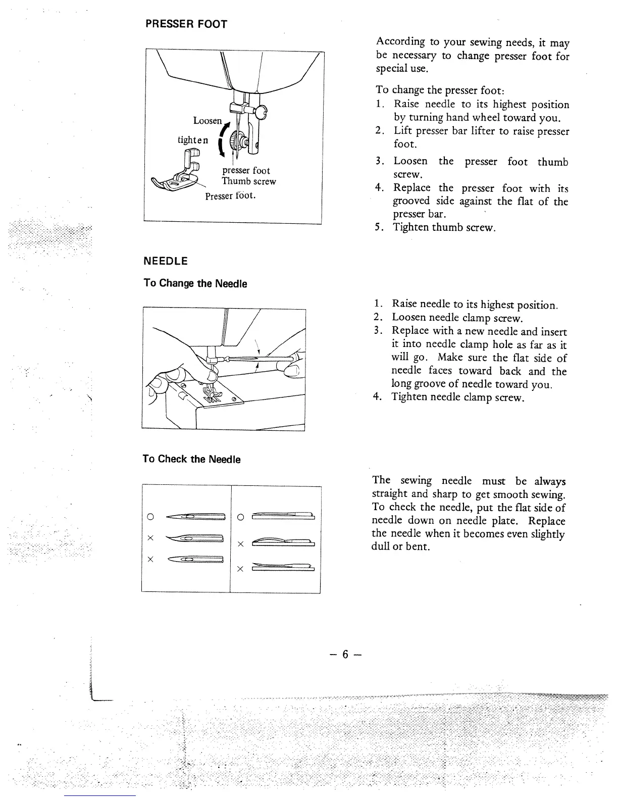 White 447 - Changing the Presser Foot; Needle Installation and Care