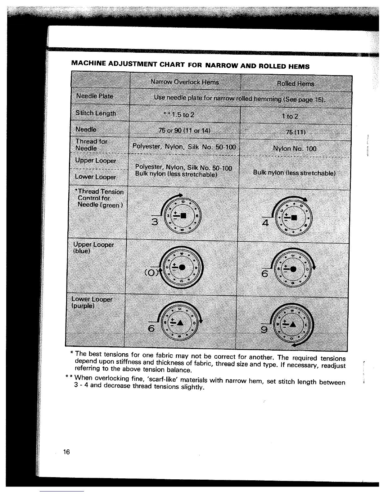 White 503 - MACHINE ADJUSTMENT CHART FOR NARROW AND ROLLED HEMS
