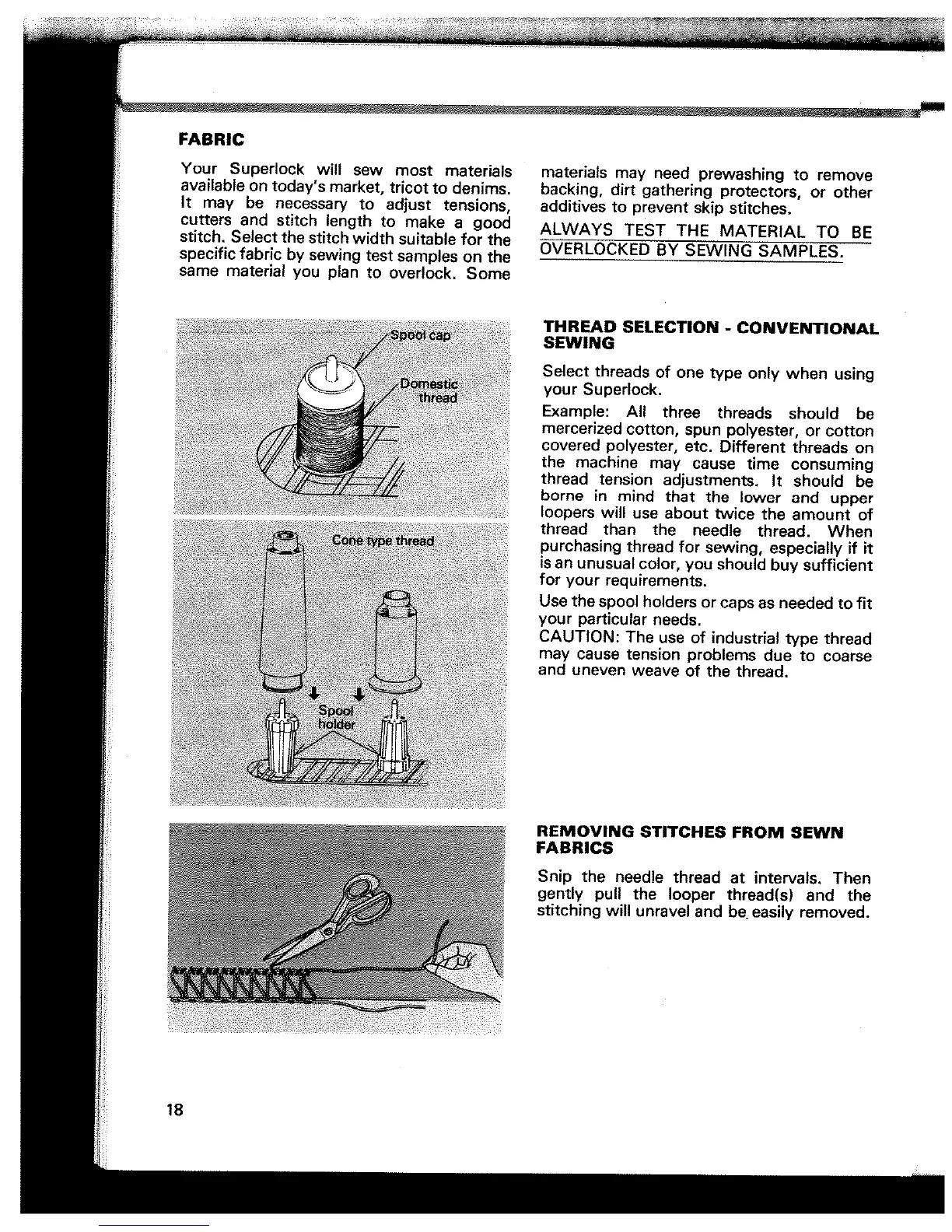 White 503 - Fabric; Thread Selection; Removing Stitches from Sewn Fabrics
