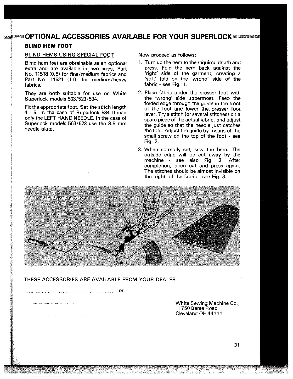 White 503 - Blind Hem Foot; Blind Hems Using Special Foot