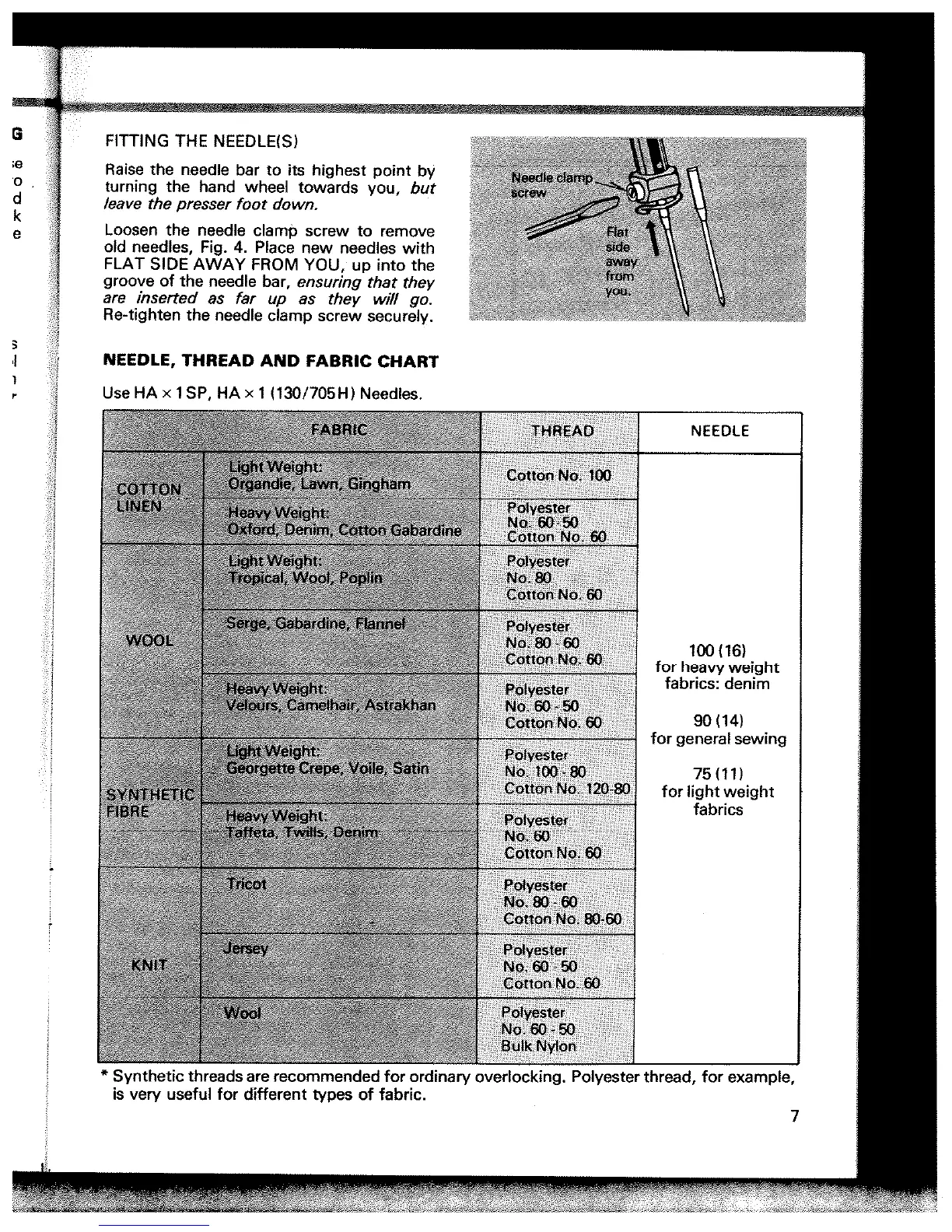 White 503 - FITTING THE NEEDLE(S); NEEDLE, THREAD AND FABRIC CHART