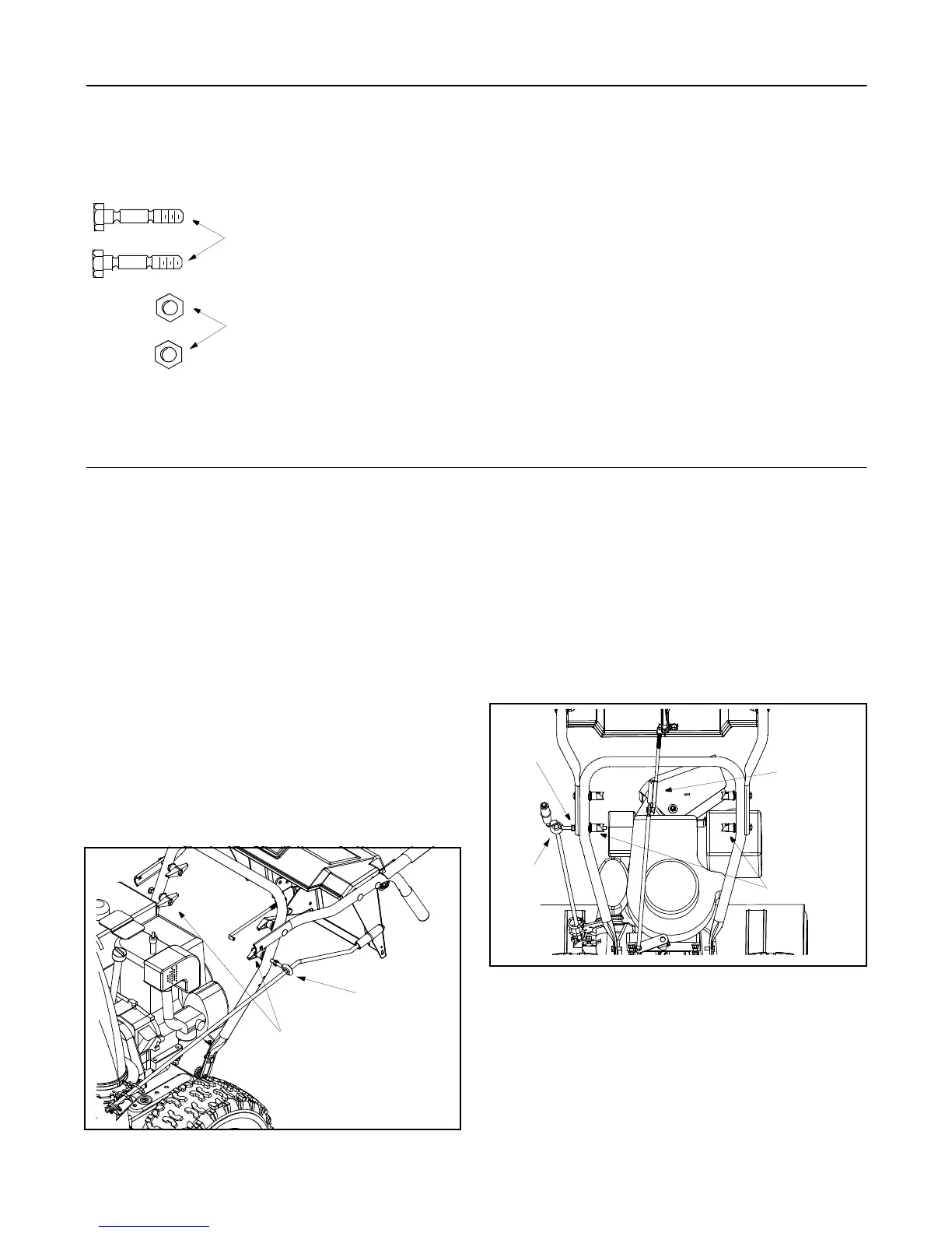 hex lock nuts. If you hit a foreign object or ice jam, the snow thrower
