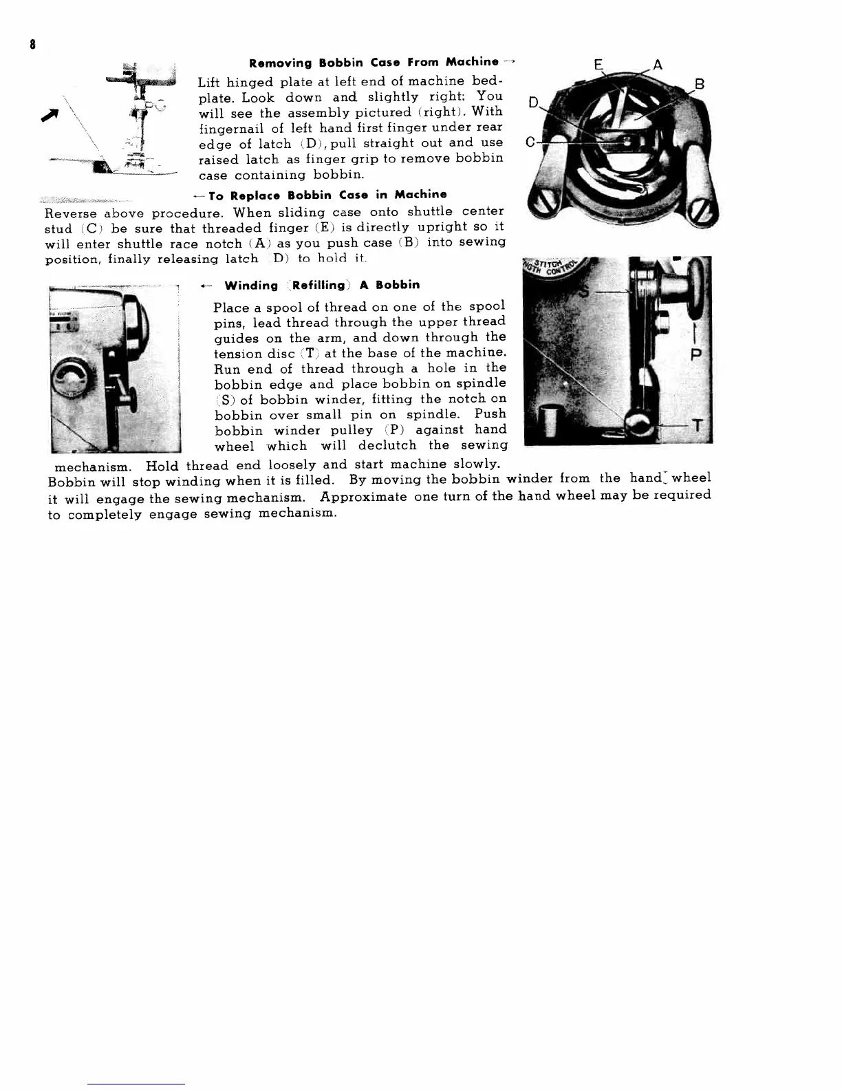 White 656 - Bobbin Handling and Winding; Removing the Bobbin Case; Replacing the Bobbin Case; Winding the Bobbin