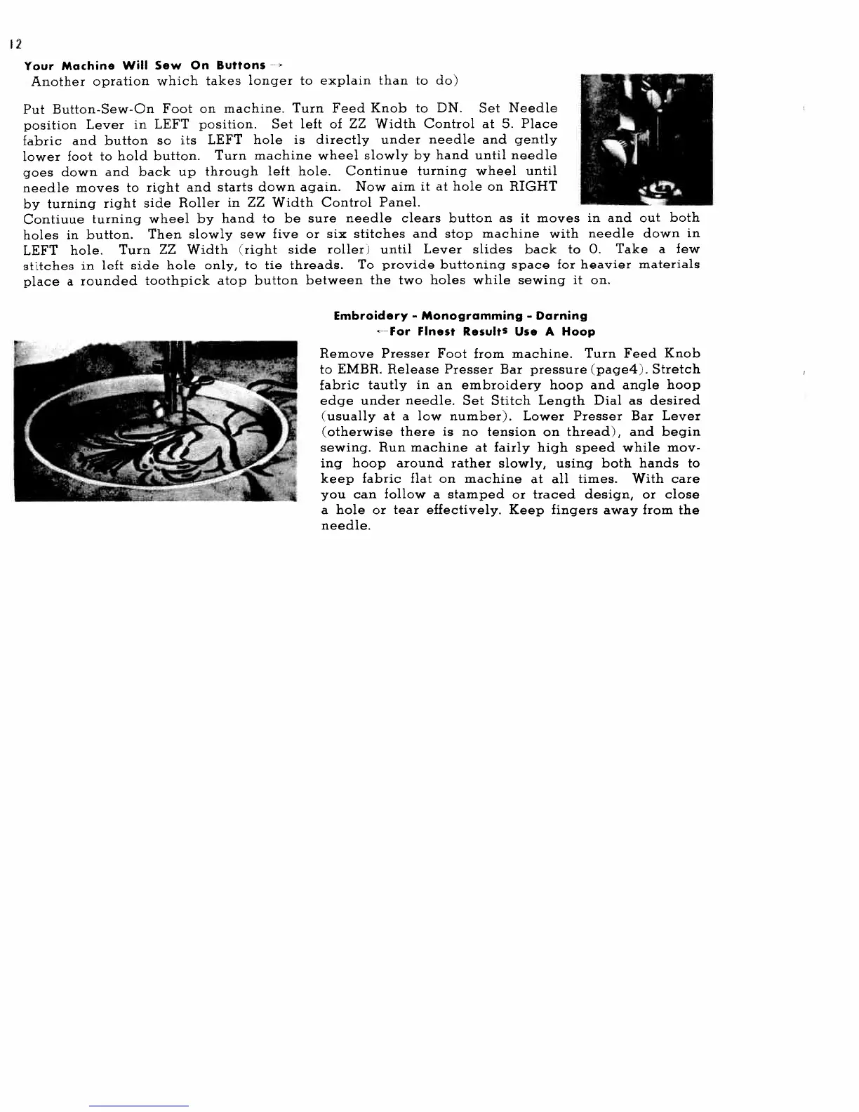 White 656 - Special Sewing Applications; Sewing On Buttons; Embroidery, Monogramming, Darning