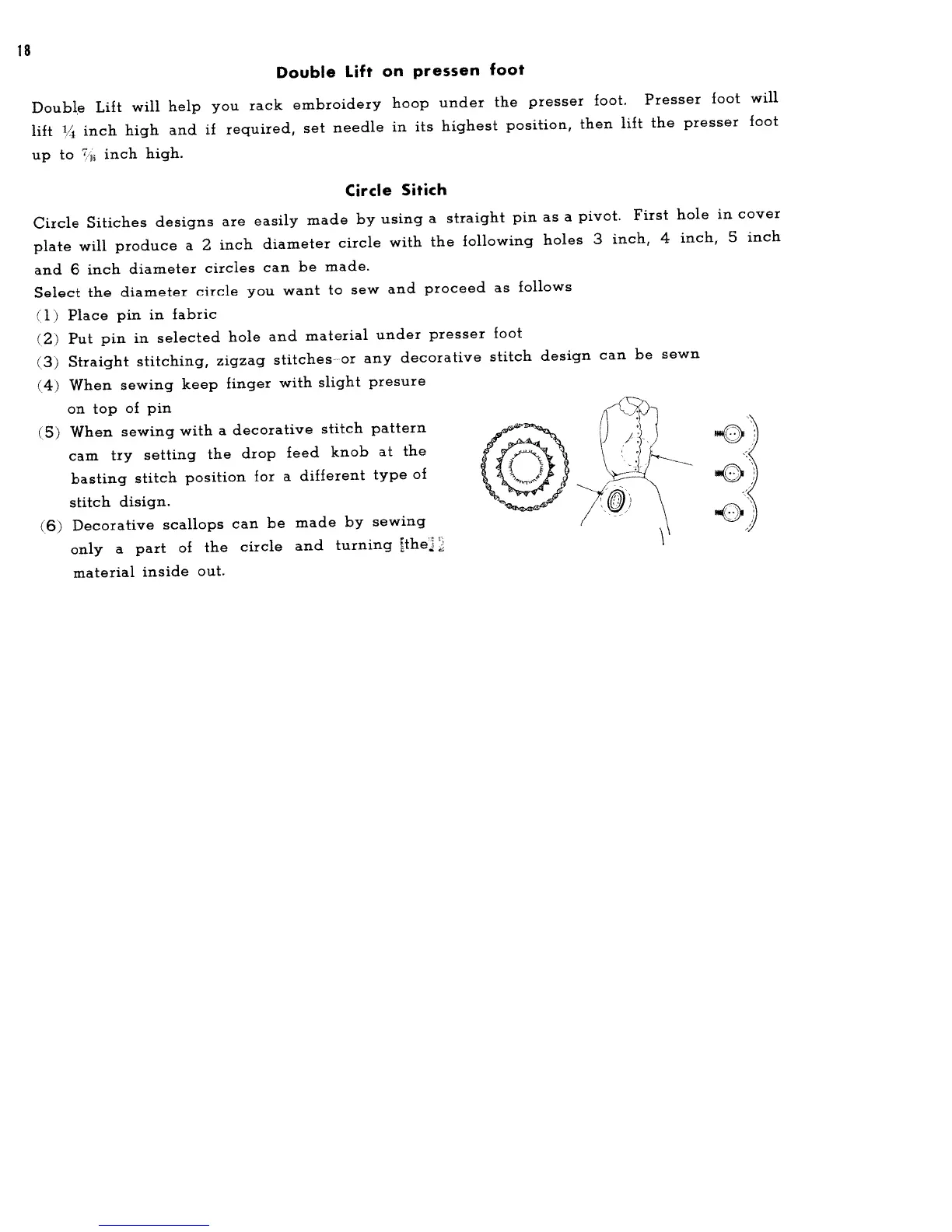 White 656 - Advanced Stitching Features; Double Lift for Hoops; Creating Circle Stitches