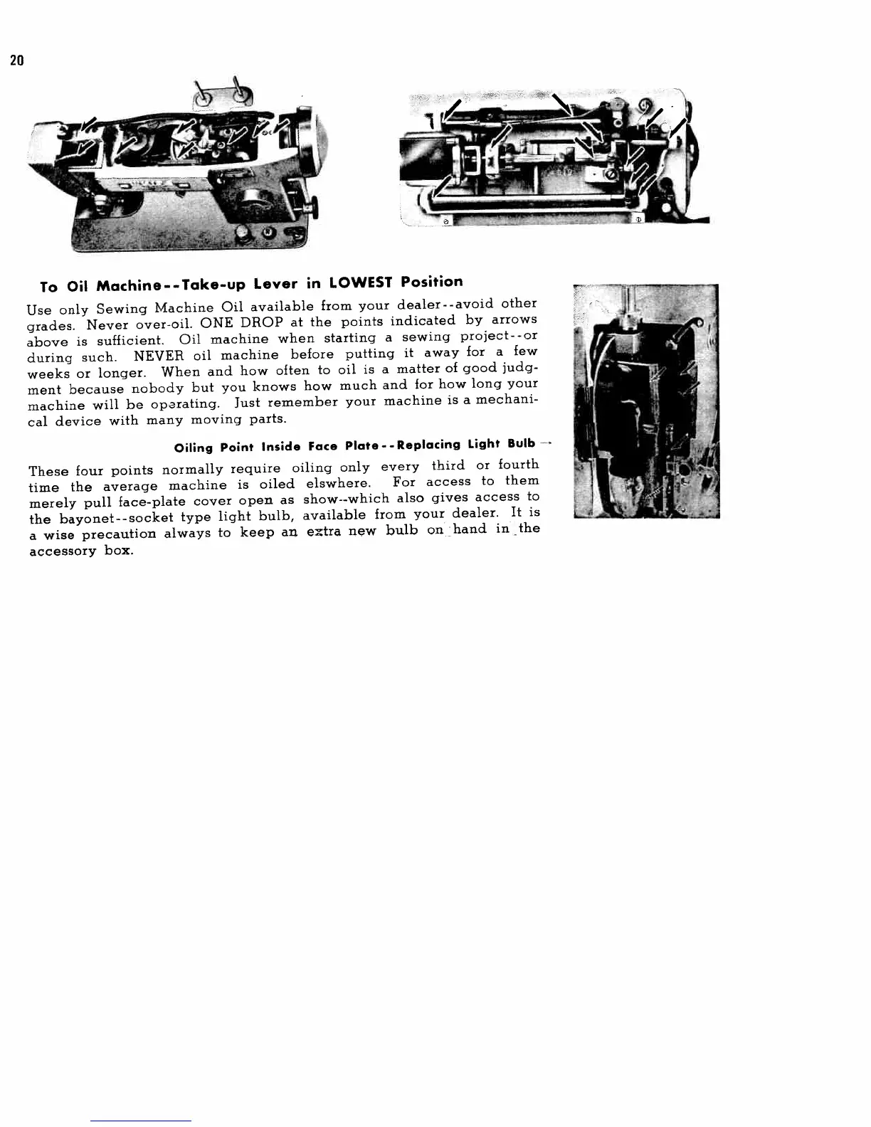 White 656 - Machine Lubrication and Lighting; Proper Machine Oiling; Oiling Points and Light Bulb Replacement