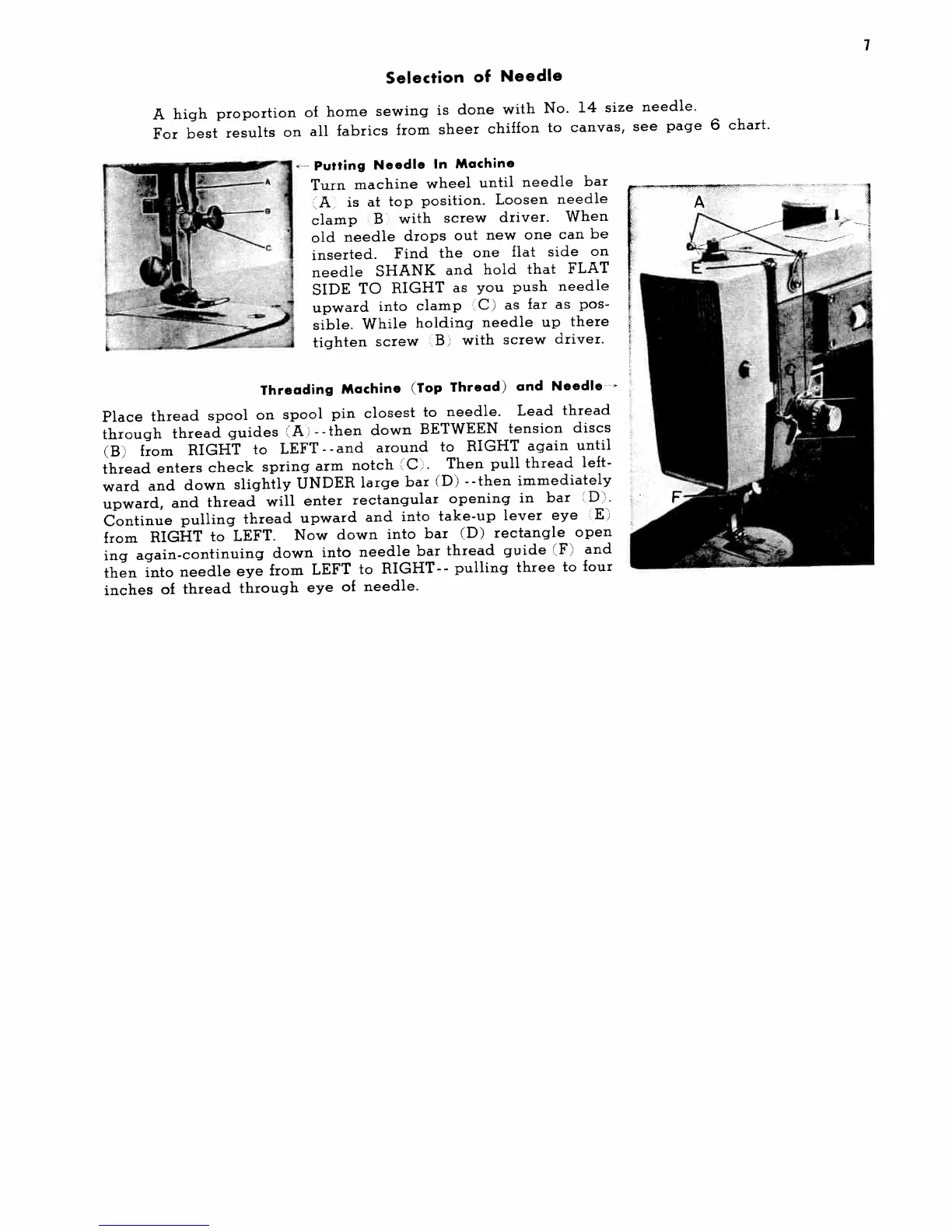 White 656 - Needle and Threading Procedures; Needle Selection Guidance; Installing the Machine Needle; Threading the Top Thread