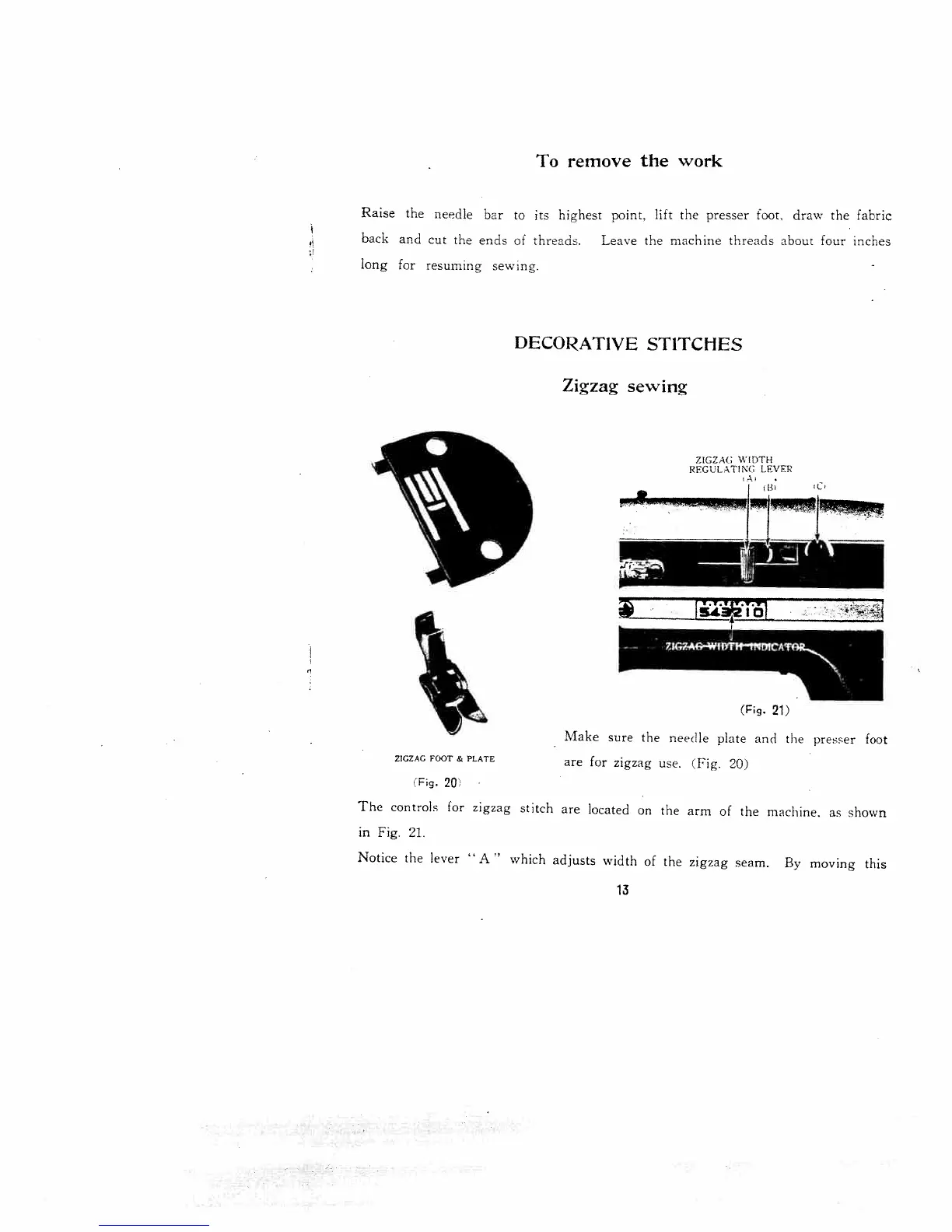 White 671 - Decorative Stitches; To Remove the Work; Zigzag Sewing