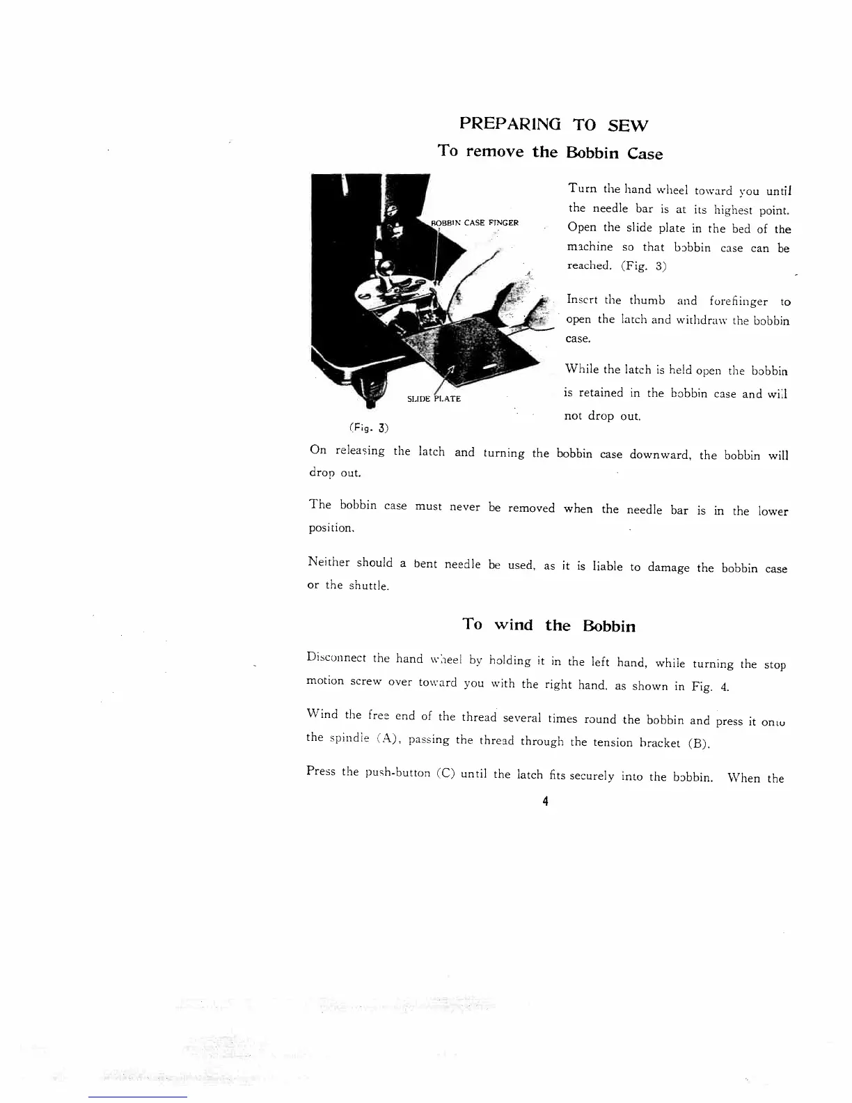 White 671 - Preparing the Sewing Machine; Removing the Bobbin Case; Winding the Bobbin
