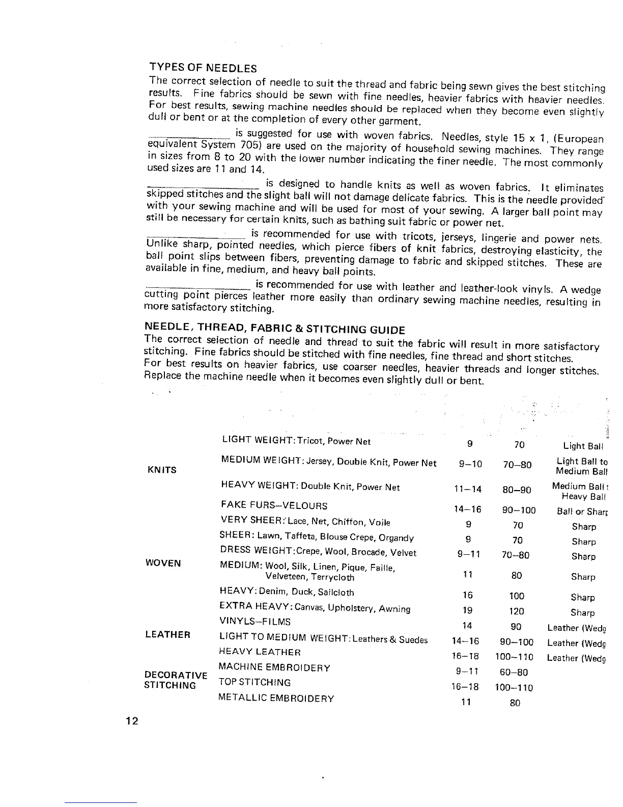 White 710 - Types of Needles; Needle, Thread, Fabric and Stitching Guide