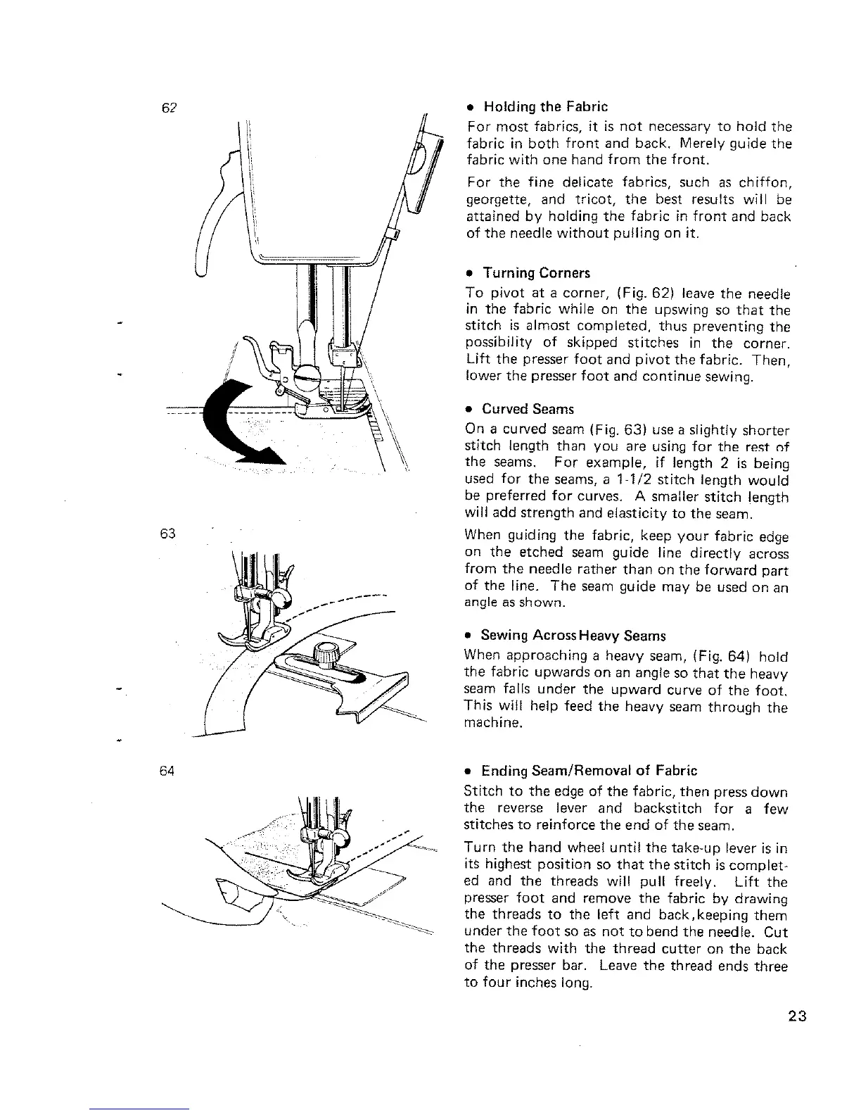 White 710 - Holding the Fabric; Turning Corners; Curved Seams; Ending Seam;Removal of Fabric