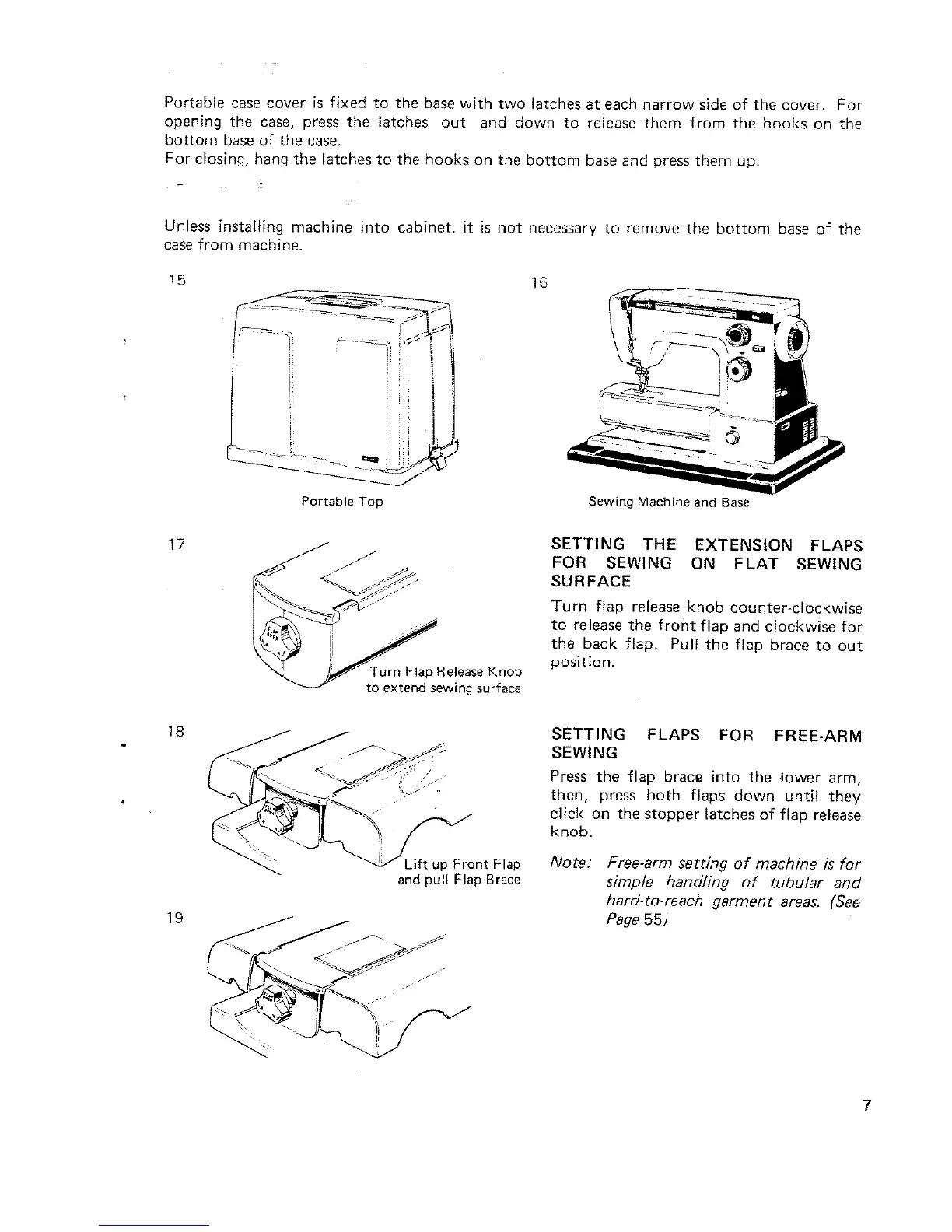 White 710 - Setting the Extension Flaps for Sewing on Flat Sewing Surface; Setting Flaps for Free-Arm Sewing