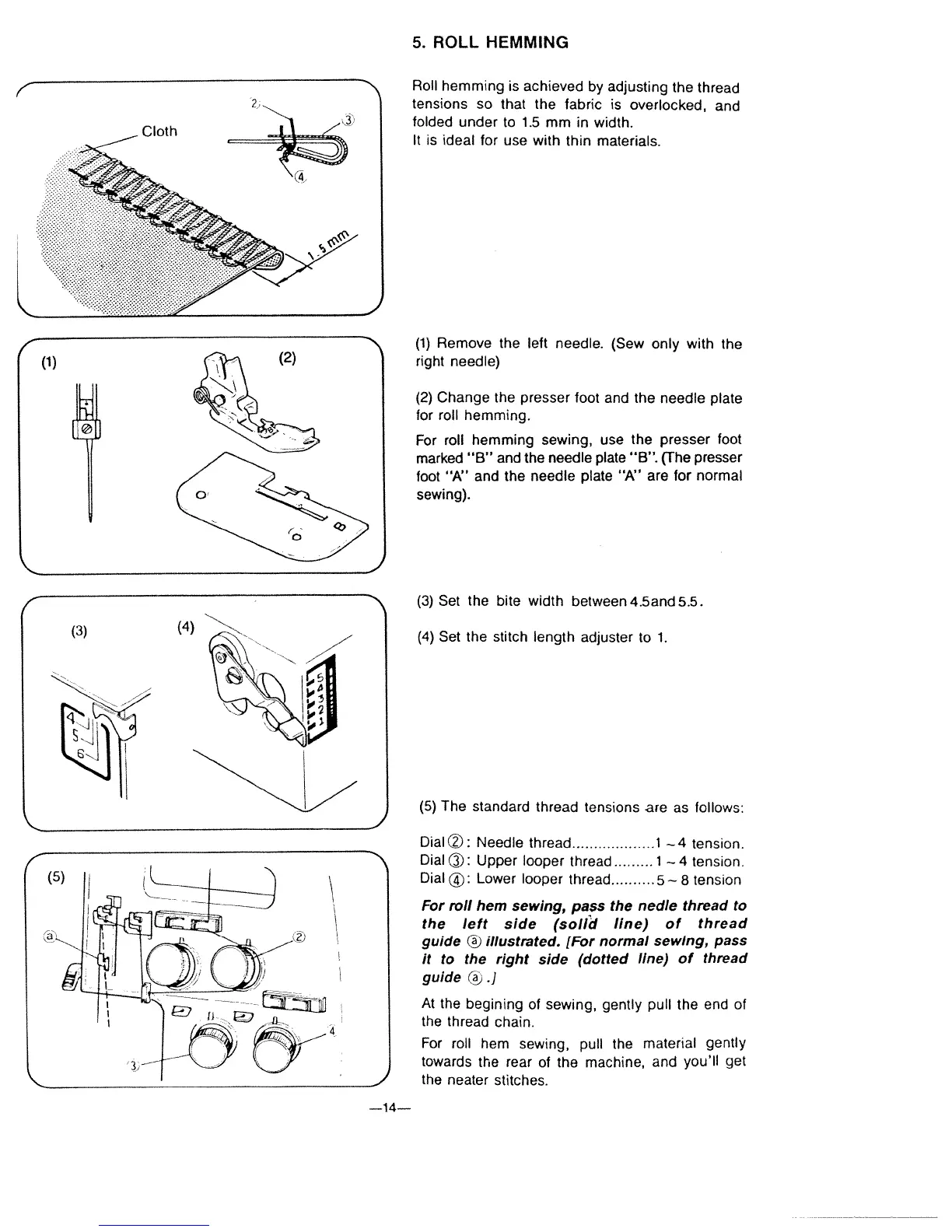 White 7234 - Roll Hemming Procedure; Setup and Tension Settings for Roll Hem