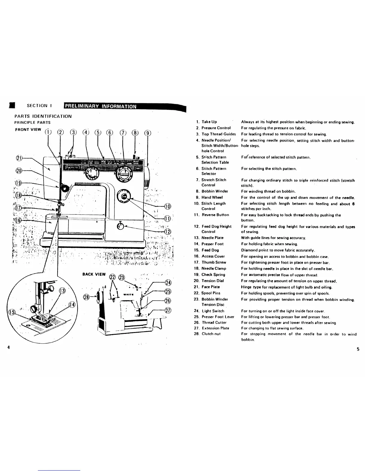 White 734 - Preliminary Information; Parts Identification; Principle Parts Overview