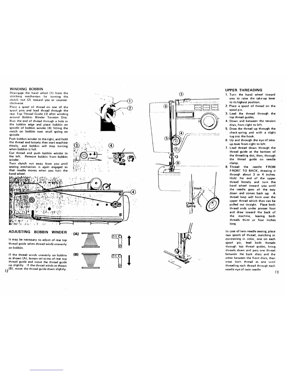White 734 - Winding the Bobbin; Adjusting the Bobbin Winder Tension; Upper Threading Procedure