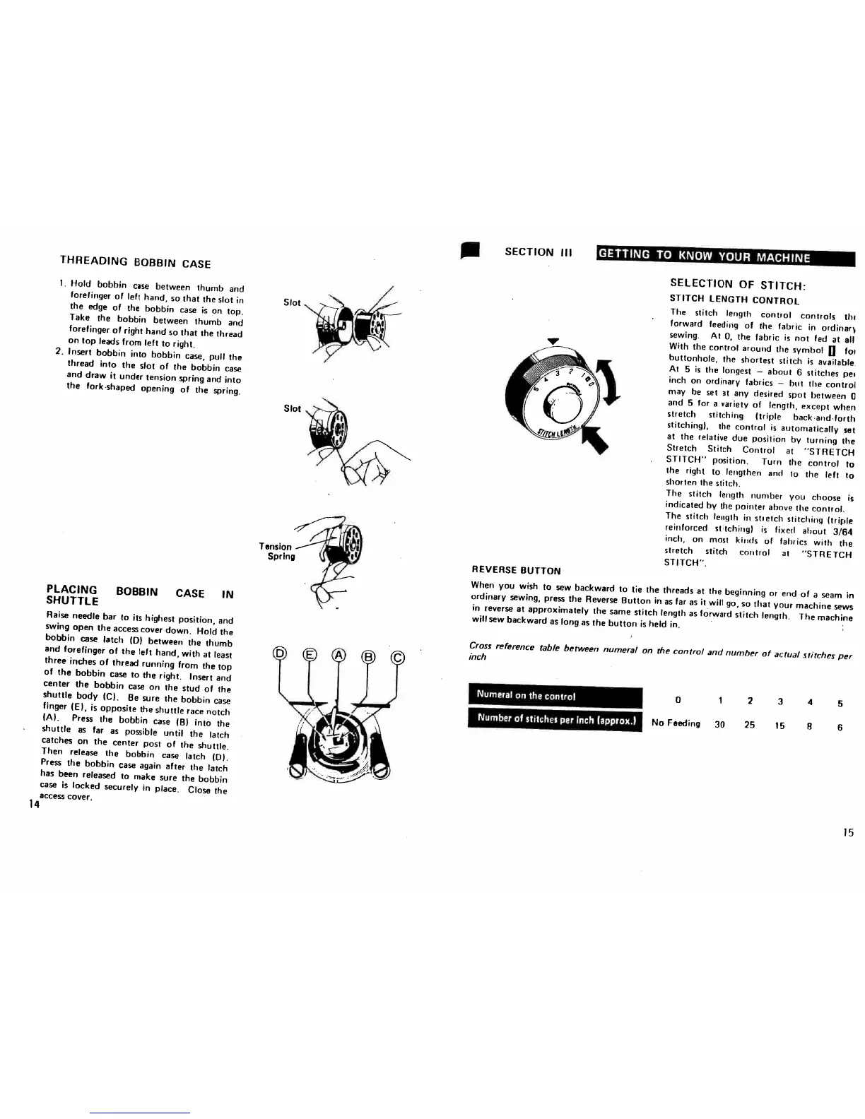 White 734 - Threading the Bobbin Case; Placing the Bobbin Case in Shuttle; Understanding Your Sewing Machine; Stitch Length Control and Selection