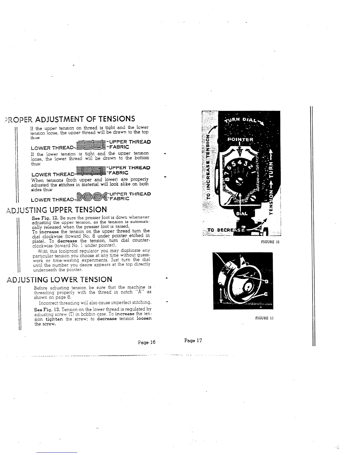 White 77 - ADJUSTING TENSION; PROPER ADJUSTMENT OF TENSIONS; ADJUSTING UPPER TENSION; ADJUSTING LOWER TENSION