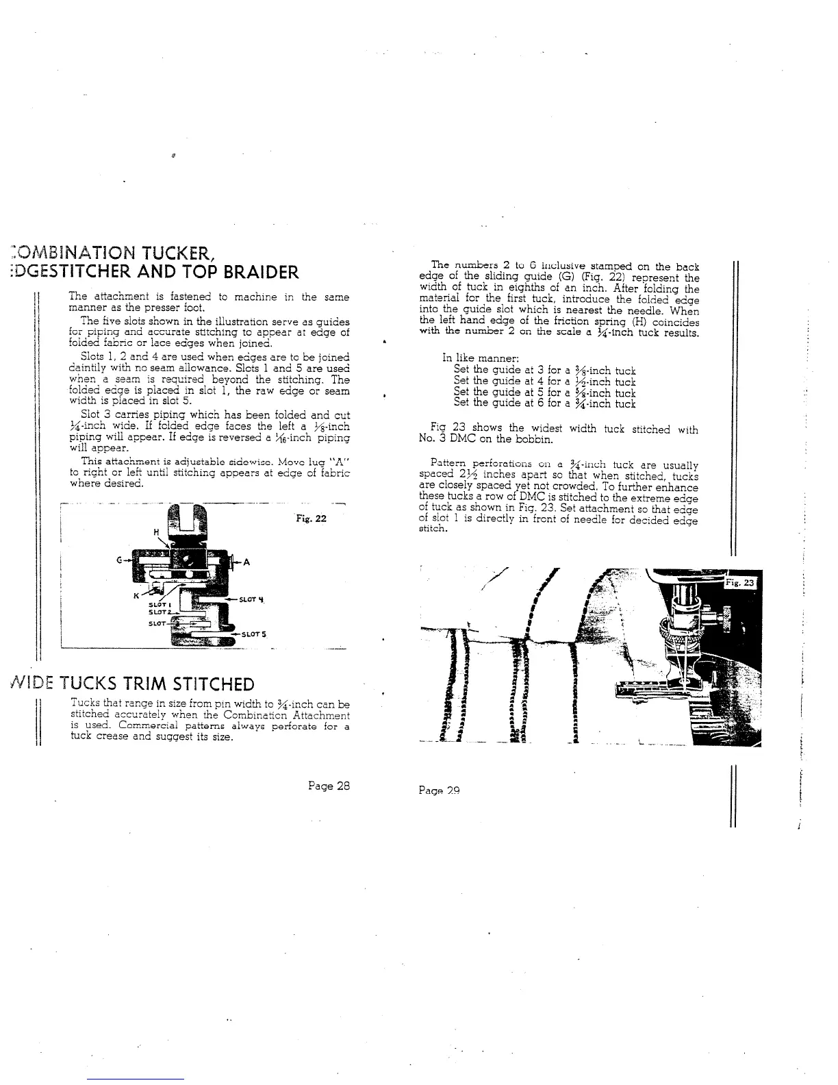 White 77 - COMBINATION ATTACHMENT FUNCTIONS; COMBINATION TUCKER, EDGESTITCHER AND TOP BRAIDER; WIDE TUCKS TRIM STITCHED
