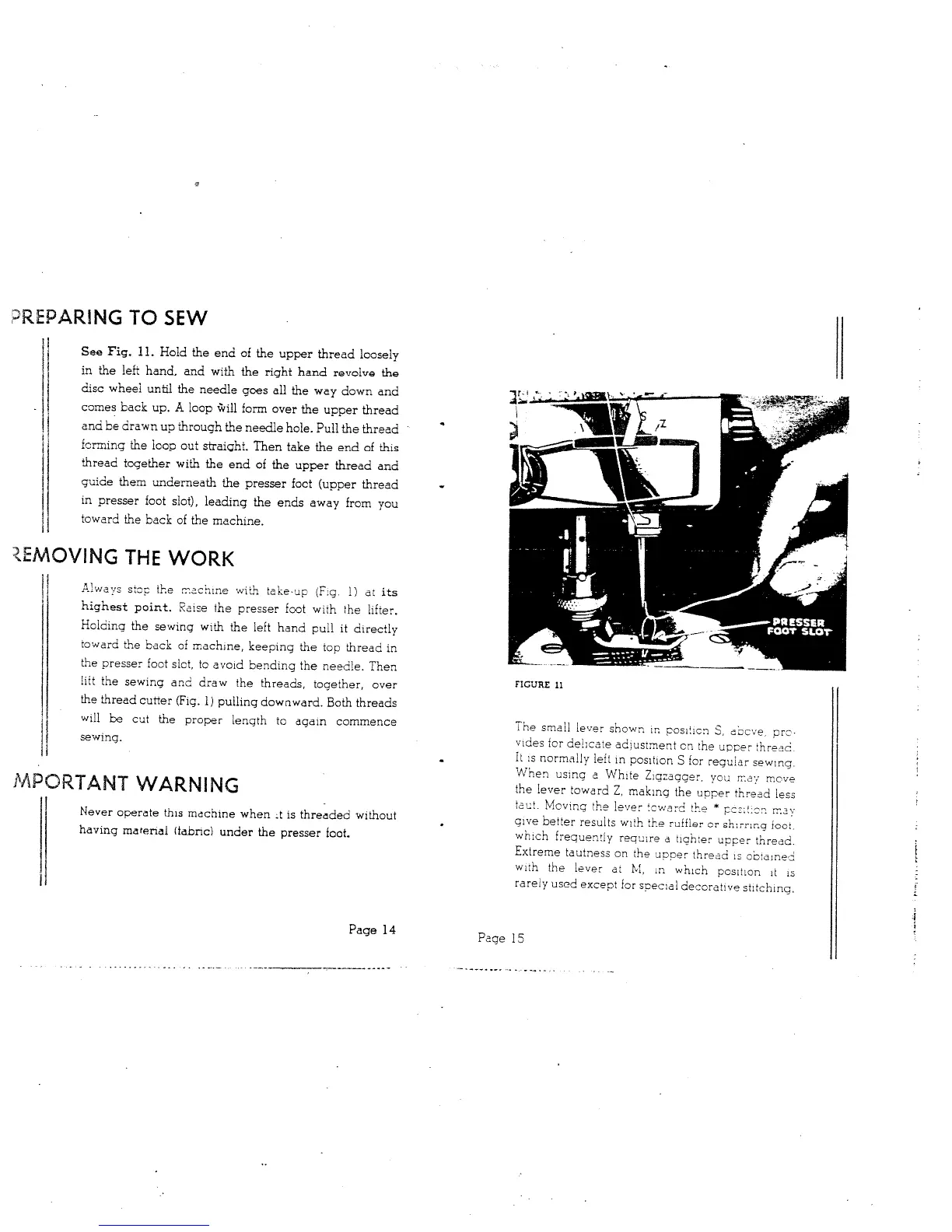 White 77 - SEWING PREPARATION; PREPARING TO SEW; REMOVING THE WORK; IMPORTANT SAFETY WARNING