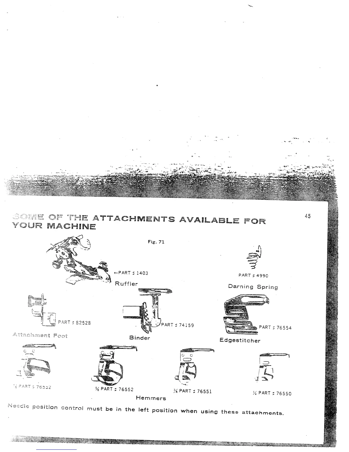 White 782 - Some of the Attachments Available for Your Machine; Attachment Foot