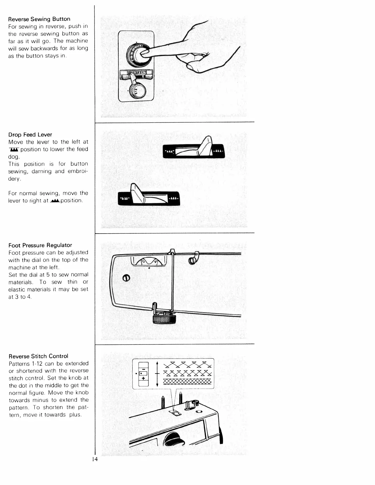White 8000 - Reverse Sewing Button; Drop Feed Lever; Foot Pressure Regulator; Reverse Stitch Control