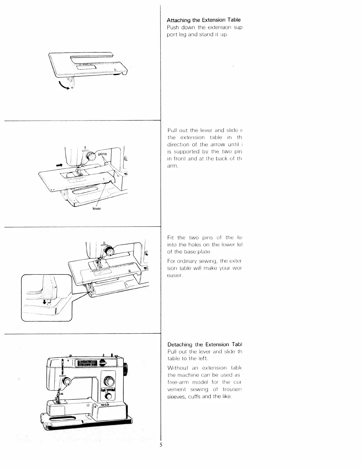 White 8000 - Attaching the Extension Table; Detaching the Extension Table